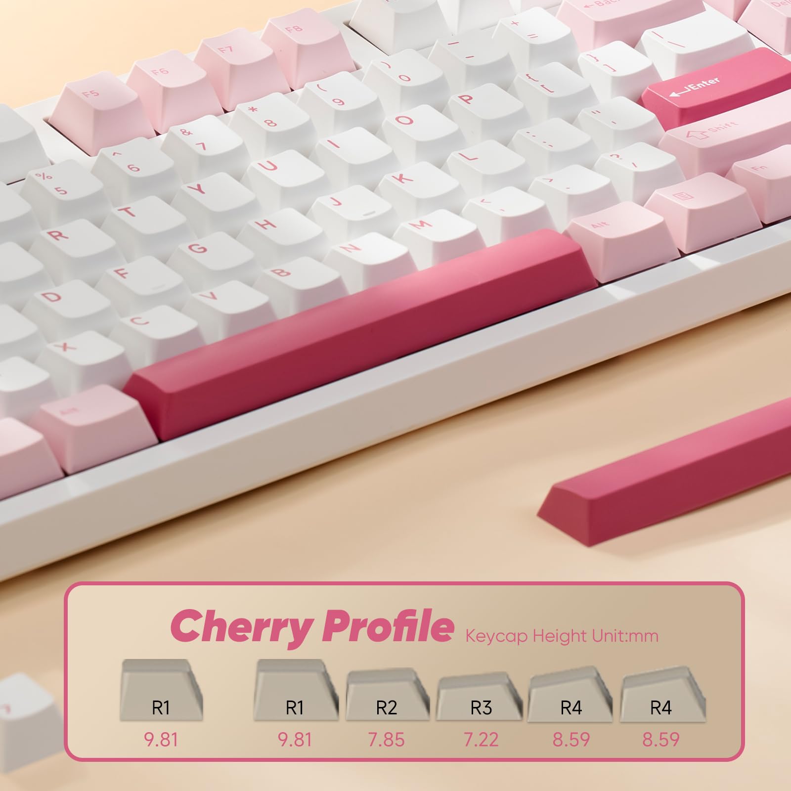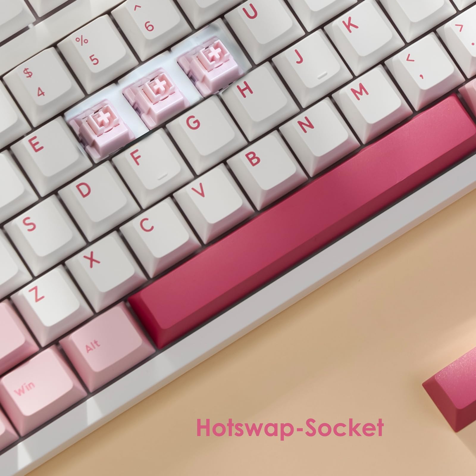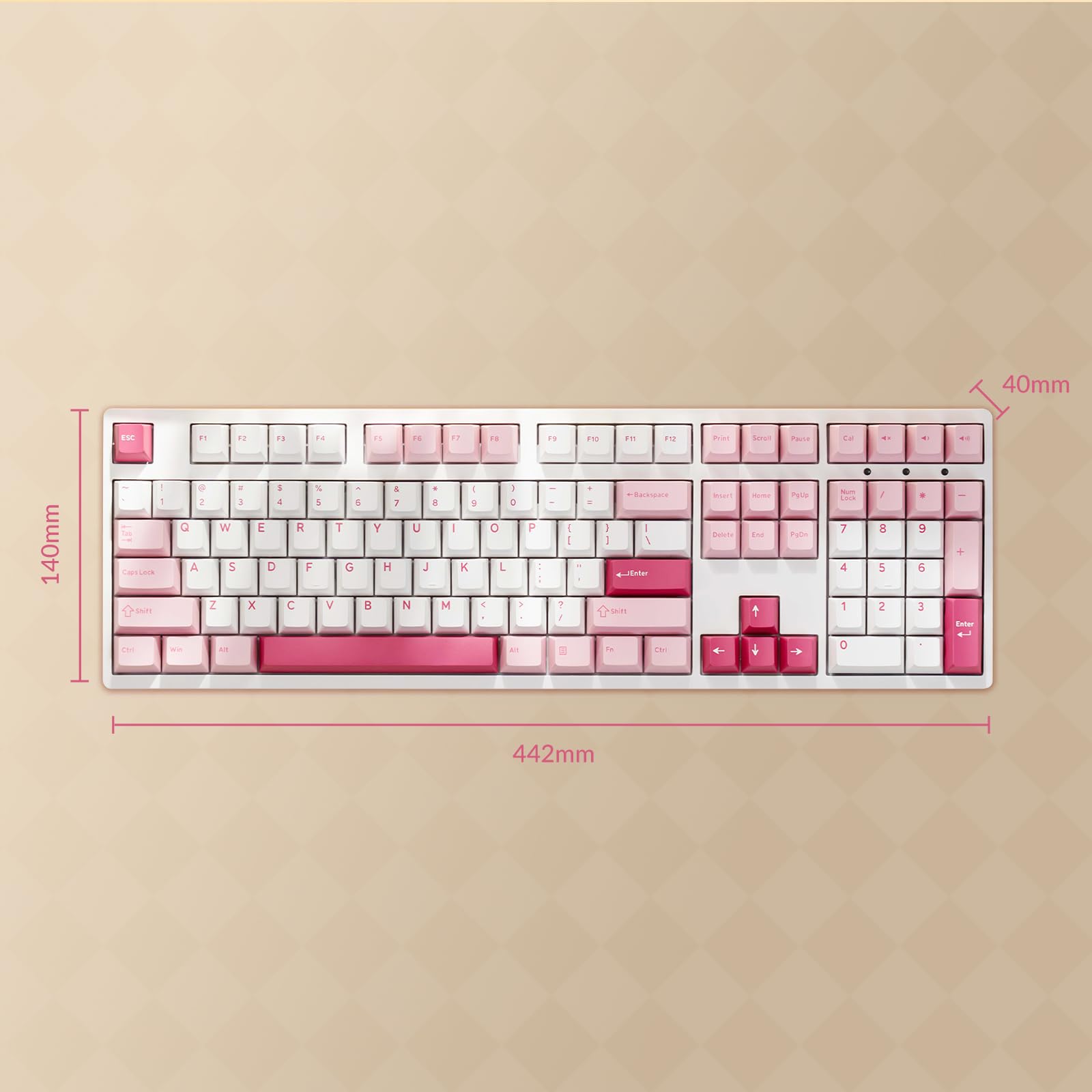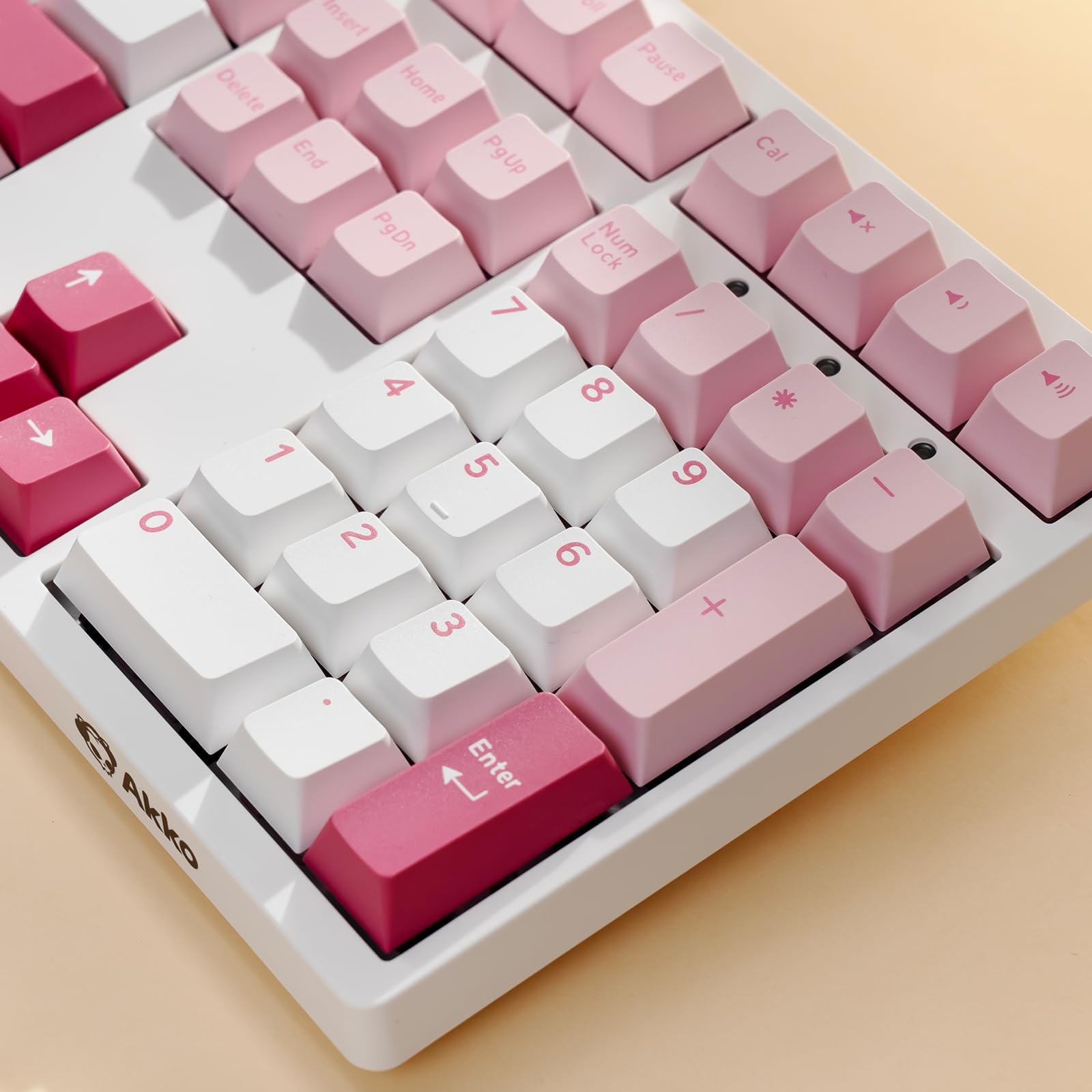 Bigger is Better: Akko 3108 Prunus Lannesiana keyboard is inspired by misty cherry blossoms, its pure white backdrop is adorned with light and dark pink keycaps. With 108 keys including a numeric pad and function buttons, it’s built for gamers, typists, programmers, and office pros—ready for any task, in any scene