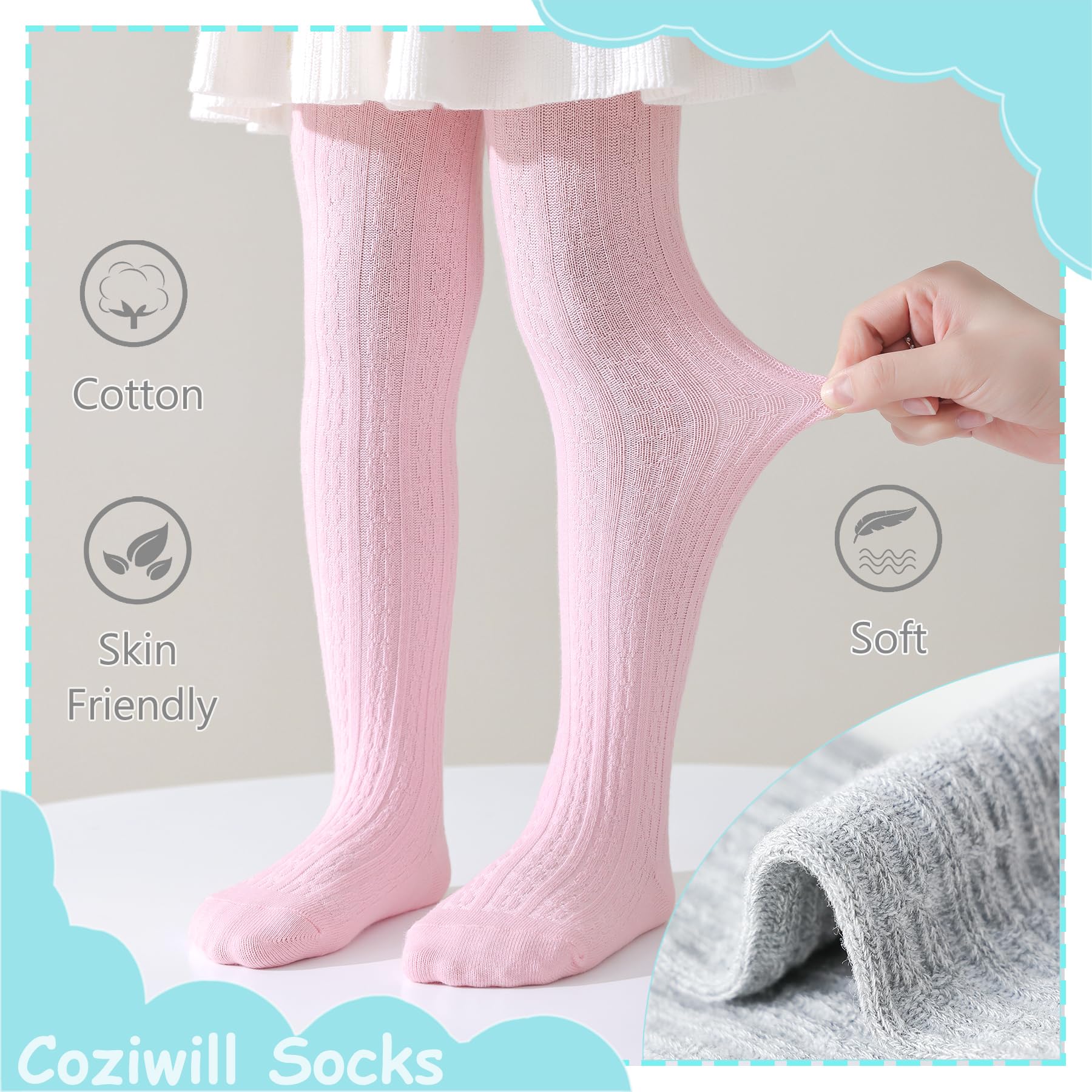 SOFT MATERIAL: Toddler tights are made of 78% Cotton Blend, 19% Polyester and 3% Spandex, which is soft and skin-friendly. The moderate thickness enables this baby cotton tights to be worn in spring, fall and winter