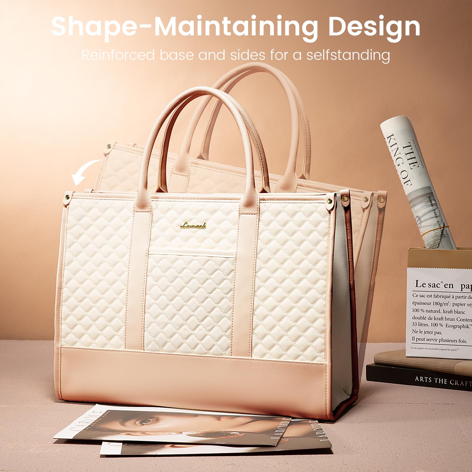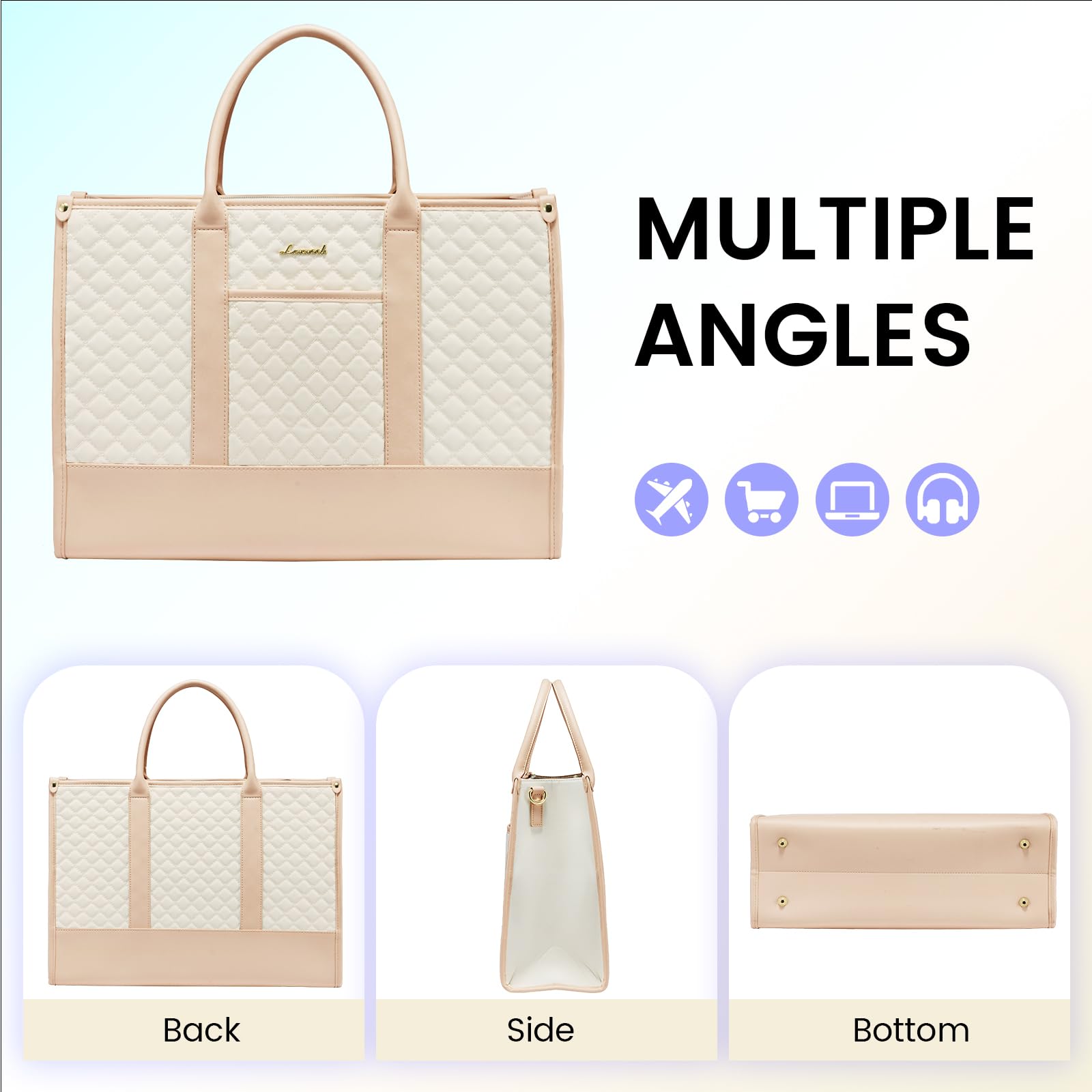 Laptop Tote with Versatile Pouch: Elevate your organization game with the included versatile pouch, designed to secure your tech accessories like cables and chargers. Work tote bag of adaptability makes it perfect for storing small essentials like business cards, stationery, and headphones, keeping them within easy reach.