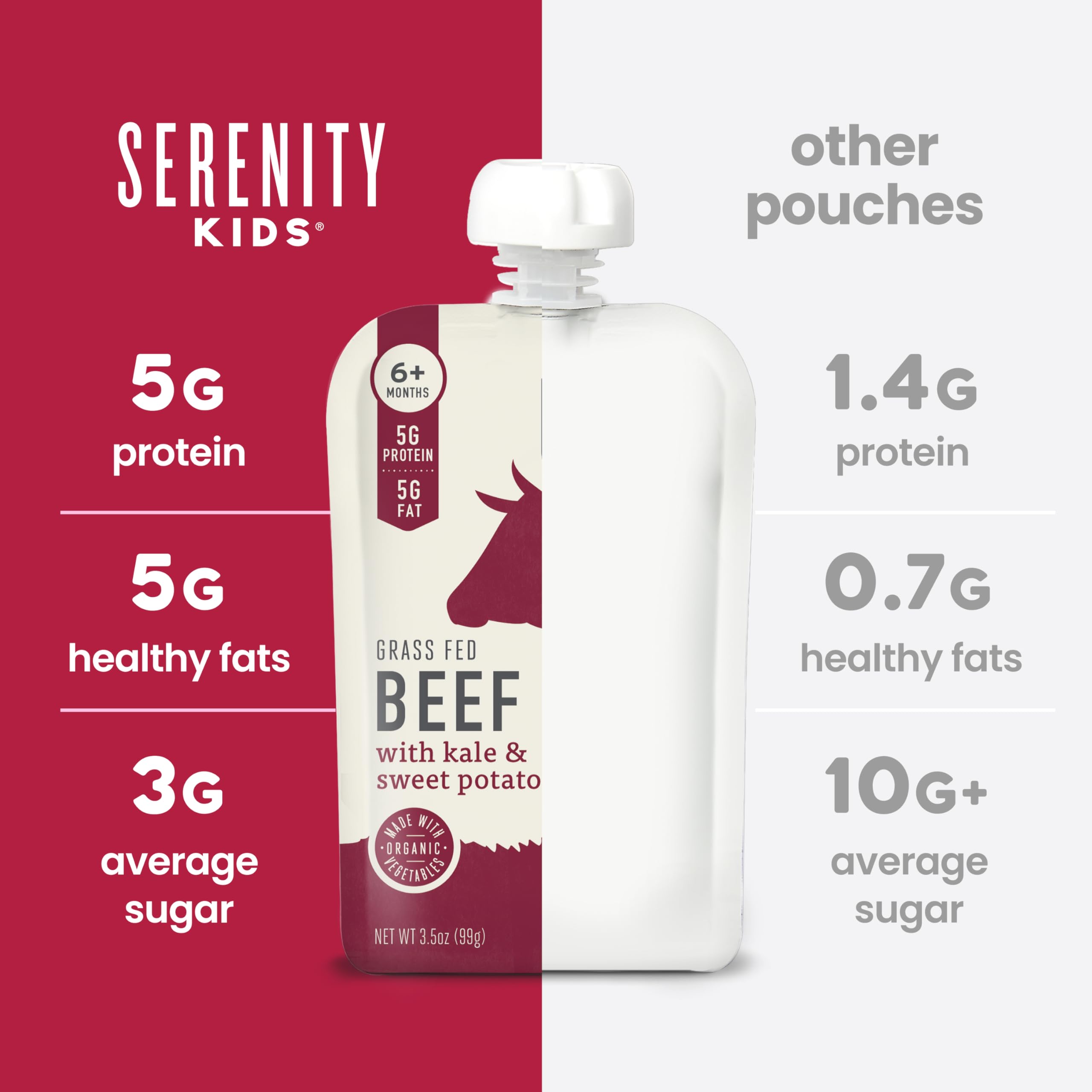 Protein Powerhouse: Give meat a chance with our beef baby food pouches, packing more protein and healthy fats than sugary snacks. Perfect for little foodies, these meat baby food pouches introduce savory, adventurous flavors to your kid