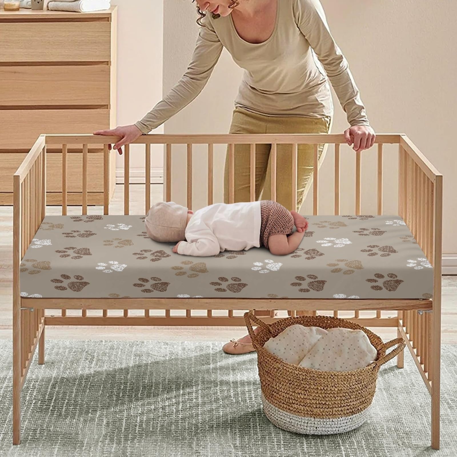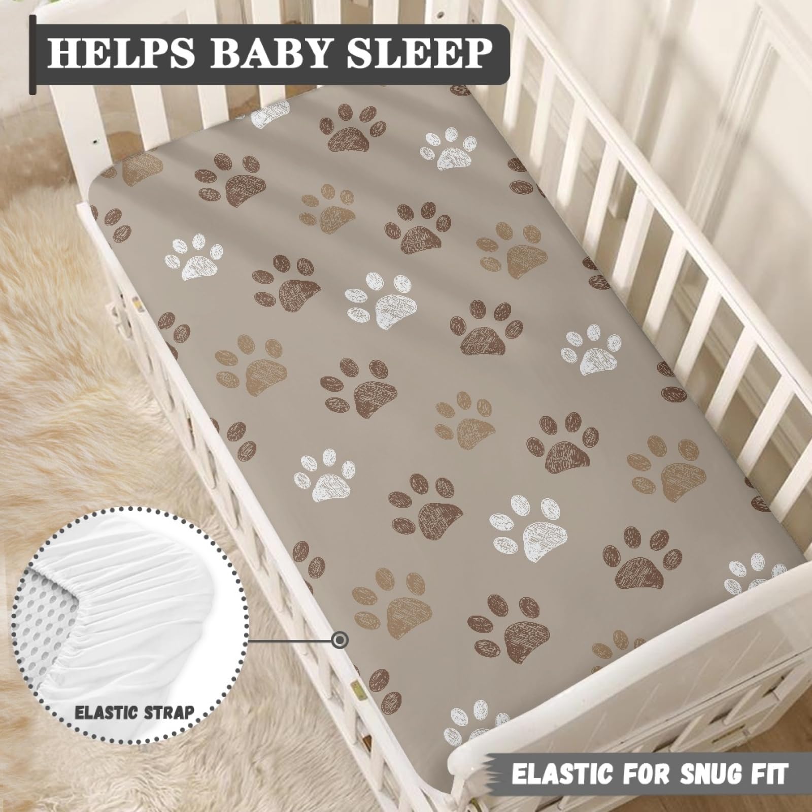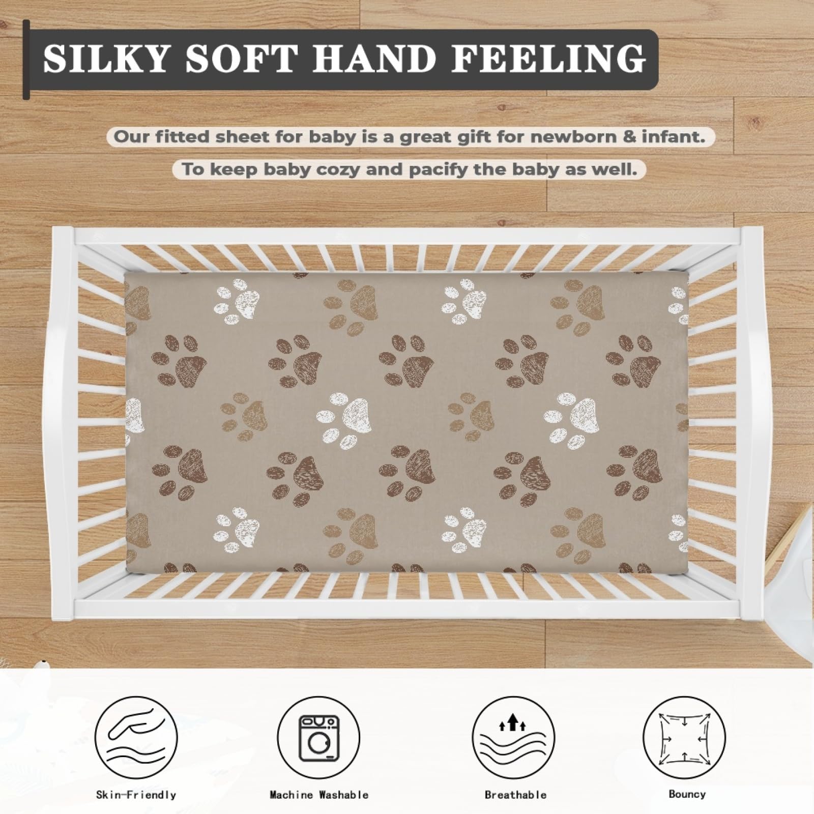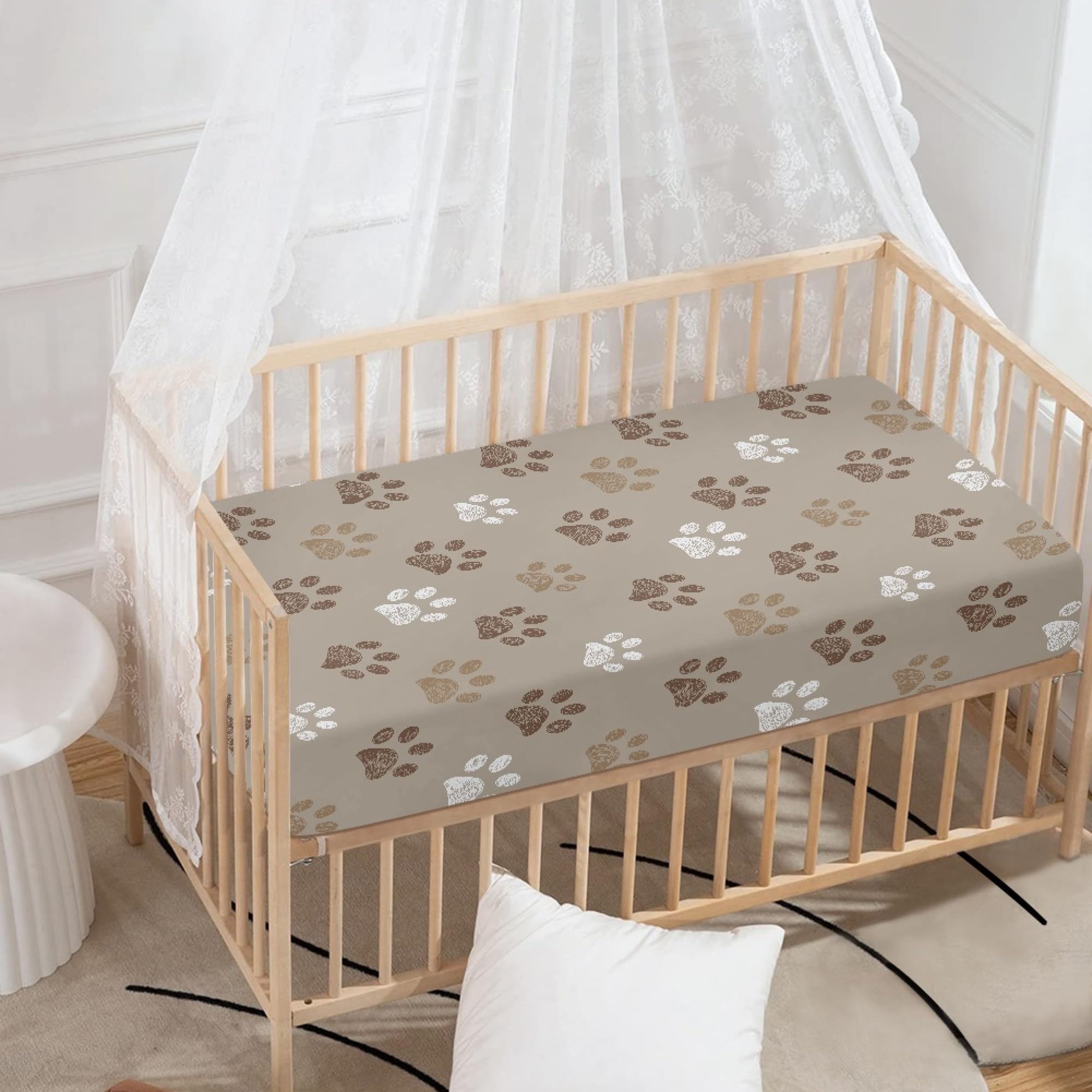 Cute Pattern: These crib mattress sheets are printed with brown dog paw pattern, which is chic and versatile to match your nursery, definitely a nice decoration. The cute dog paws baby crib sheet for boys girls can provide a cute backdrop when you capture your baby's precious moments
