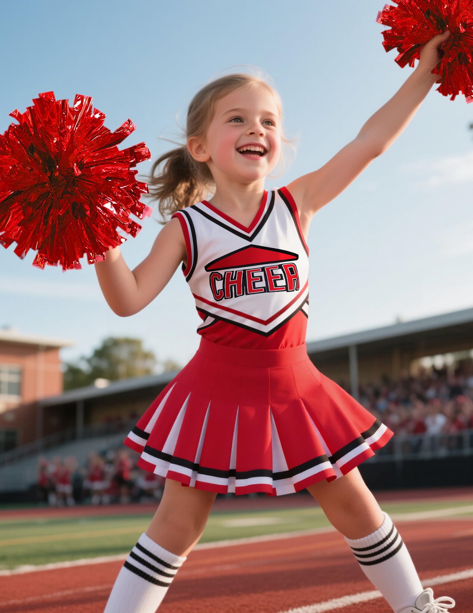Girls Cheerleader Costume : included cheerleader tops,skirts and a pair of cheerleading pom poms. Our Cheerleader Costume comes in four colors:bule ,green,red,pink ,you can choose any one you like.The bright colors of make your girl's stand out from the crowd.