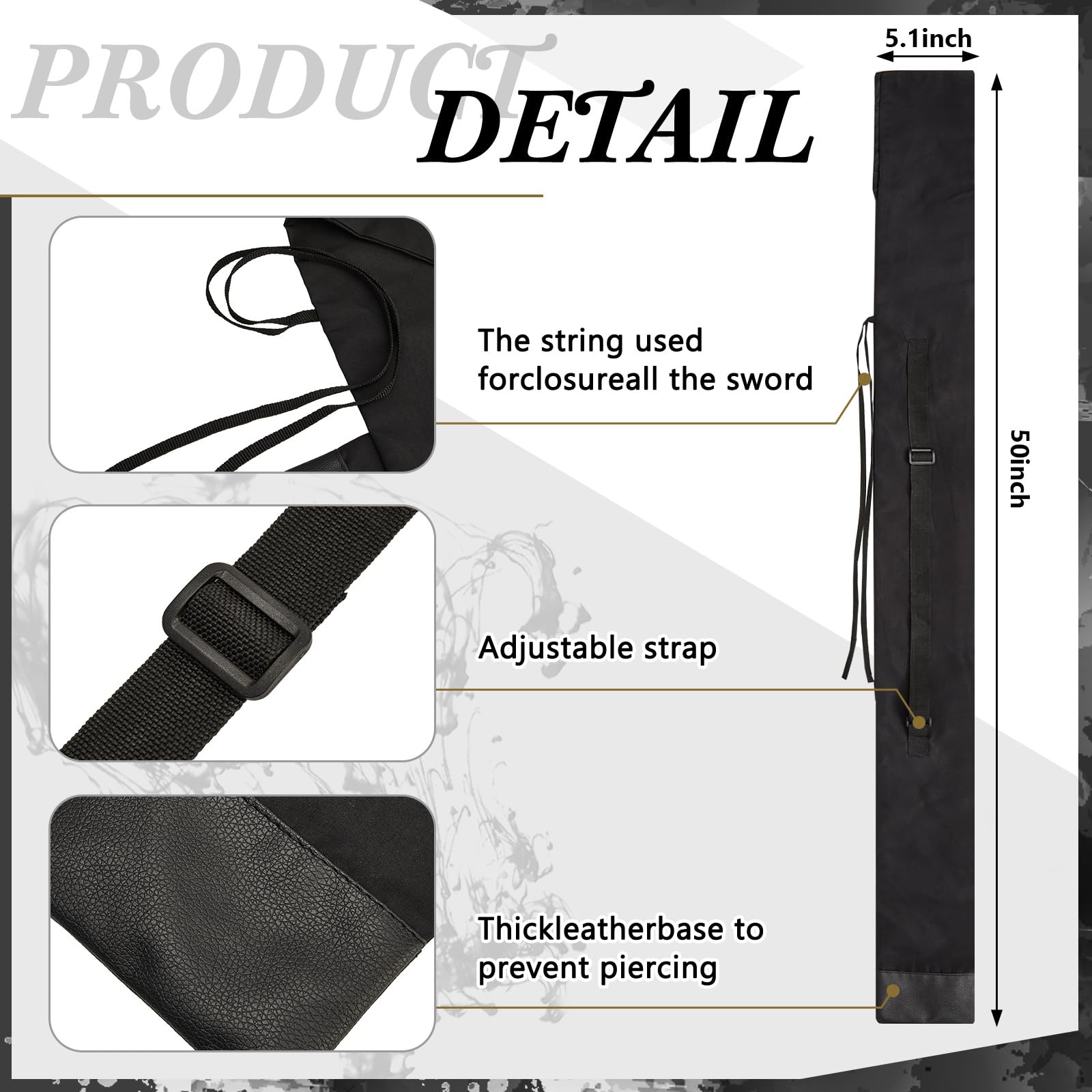 Adjustable Strap: the strap length is easy to adjust, allowing you to adjust in line with your height, body shape, so as to wear more comfortably; Also, the katana case is easy to use, just press the buckle gently, the two ends of the buckle automatically open, then you can hang the sword bag on your back or over shoulder and carry it to party, cosplay and other places