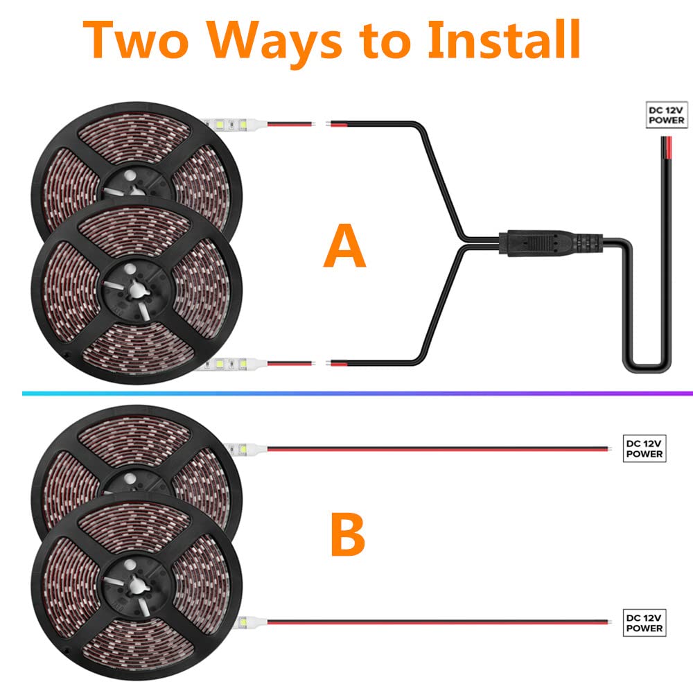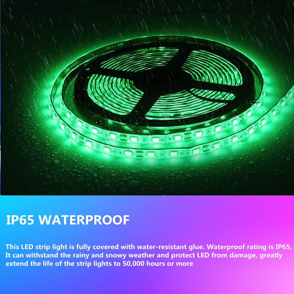 Safe & Waterproof : This LED strip light is fully covered with water-resistant glue. Waterproof rating is IP65, It can withstand the rainy and snowy weather and protect LED from damage, greatly extend the life of the strip lights to 50,000 hours or more. LED strip with operating voltage of 12V, low heat, no radiation, no flicker