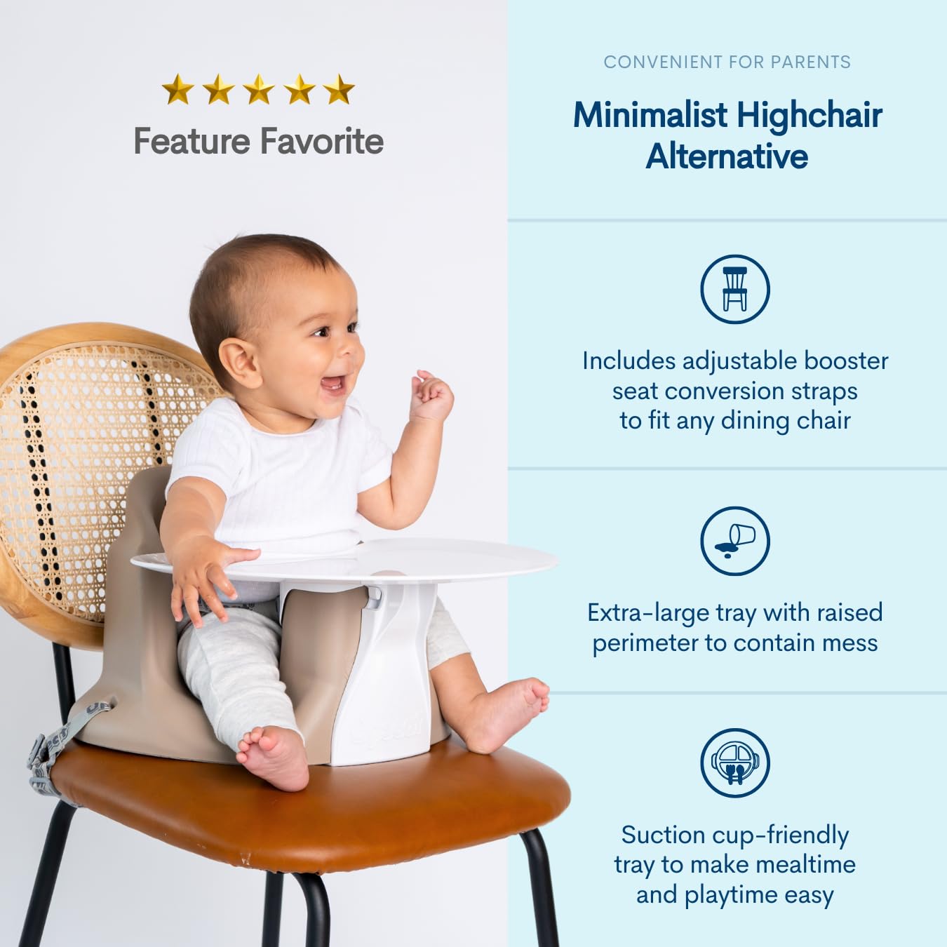 ⭐️ Versatile: Use the Upseat Baby Seat as a floor seat, booster seat with tray, or a baby feeding chair. It provides ample room for those adorable chubby legs and safely positions your baby's hips.