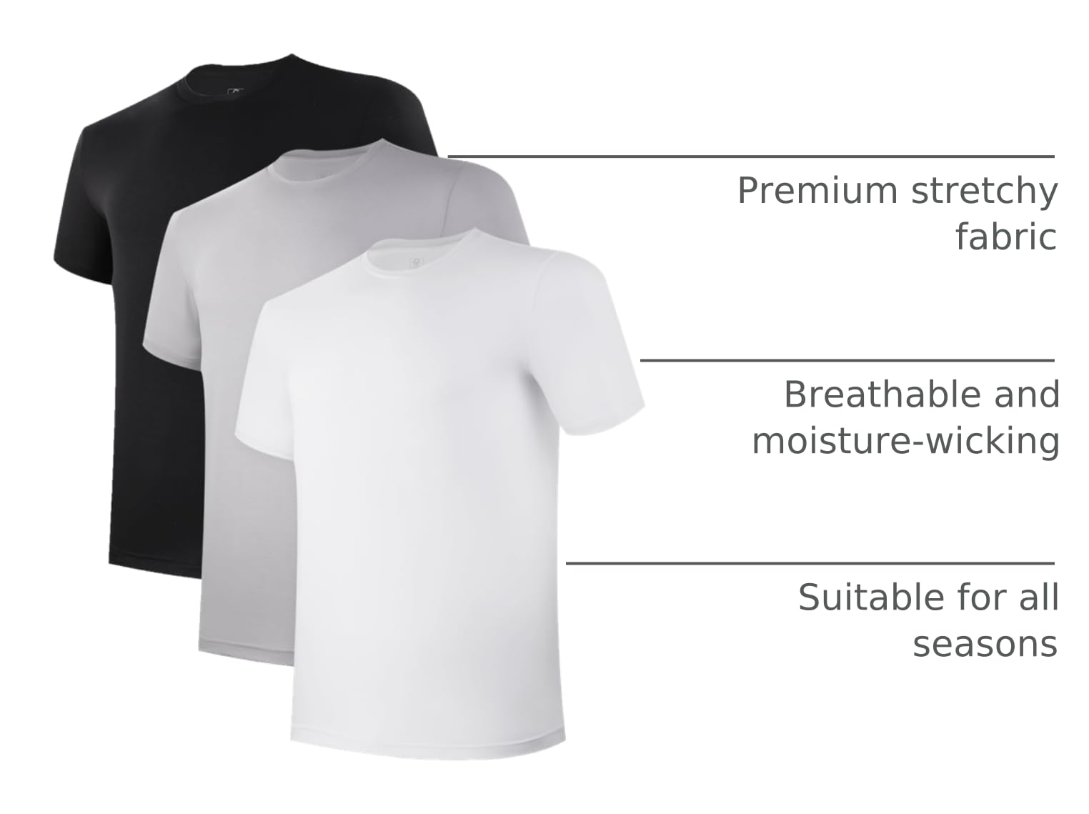 Premium Moisture-Wicking And Cool Undershirts: Our 3-Pack Men'S Tee Shirts Are Softer And Stretchy Than Traditional T-Shirts, And Are Highly Breathable, Suitable For All Seasons
