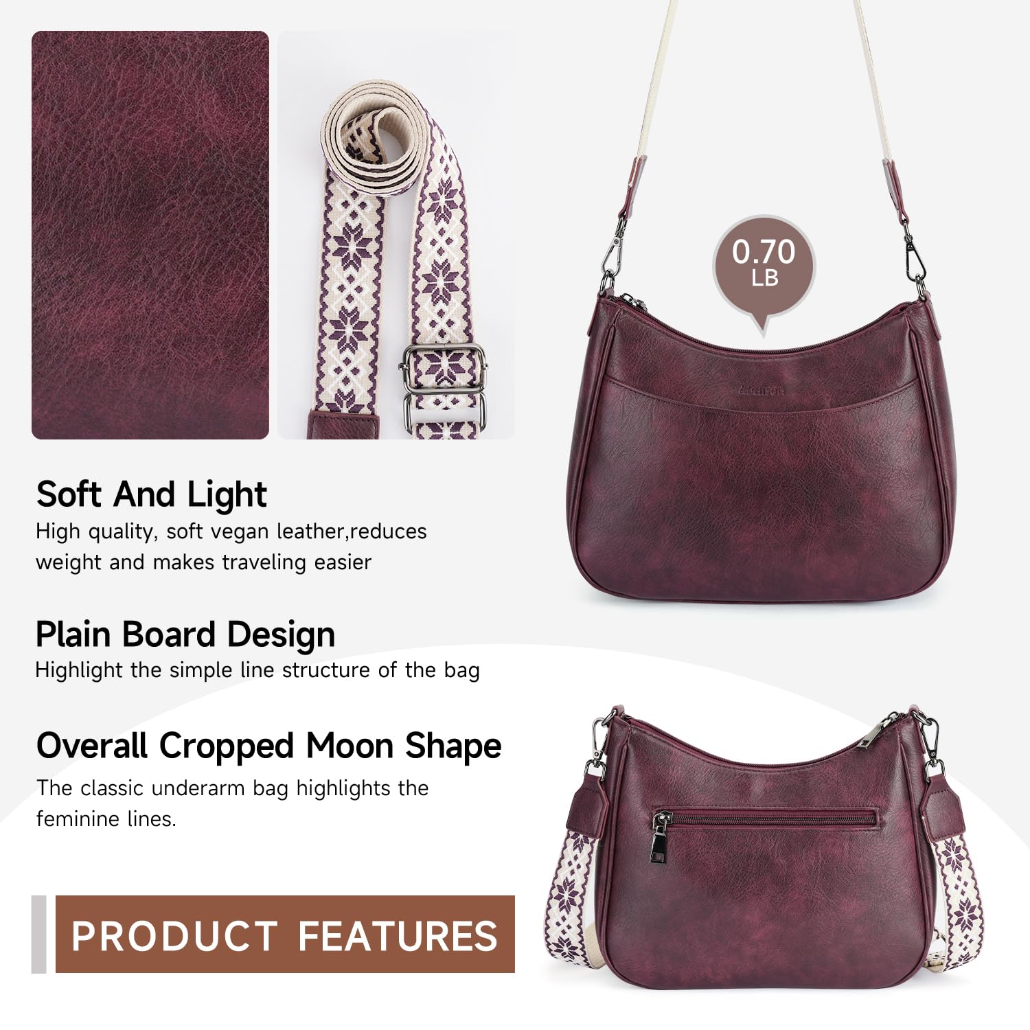 Premium Vegan Leather: Crafted from high-quality vegan leather with a soft fabric lining; this crossbody bag for women is lightweight, stylish, and durable; perfect for leisure, shopping, travel, business, or vacation