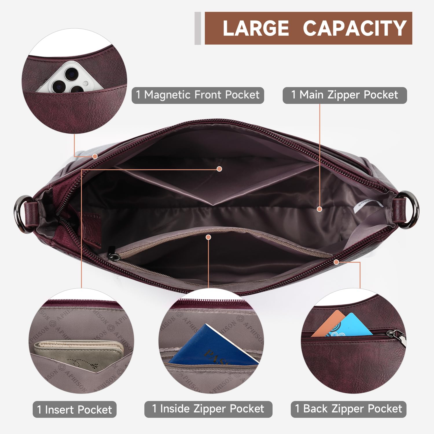 Spacious Design: This crossbody purse features a main compartment with one zipper pocket and one slip pocket; includes one exterior front magnetic pocket and one back zipper pocket; effectively organizes your cell phone, wallet, credit card, and other daily essentials
