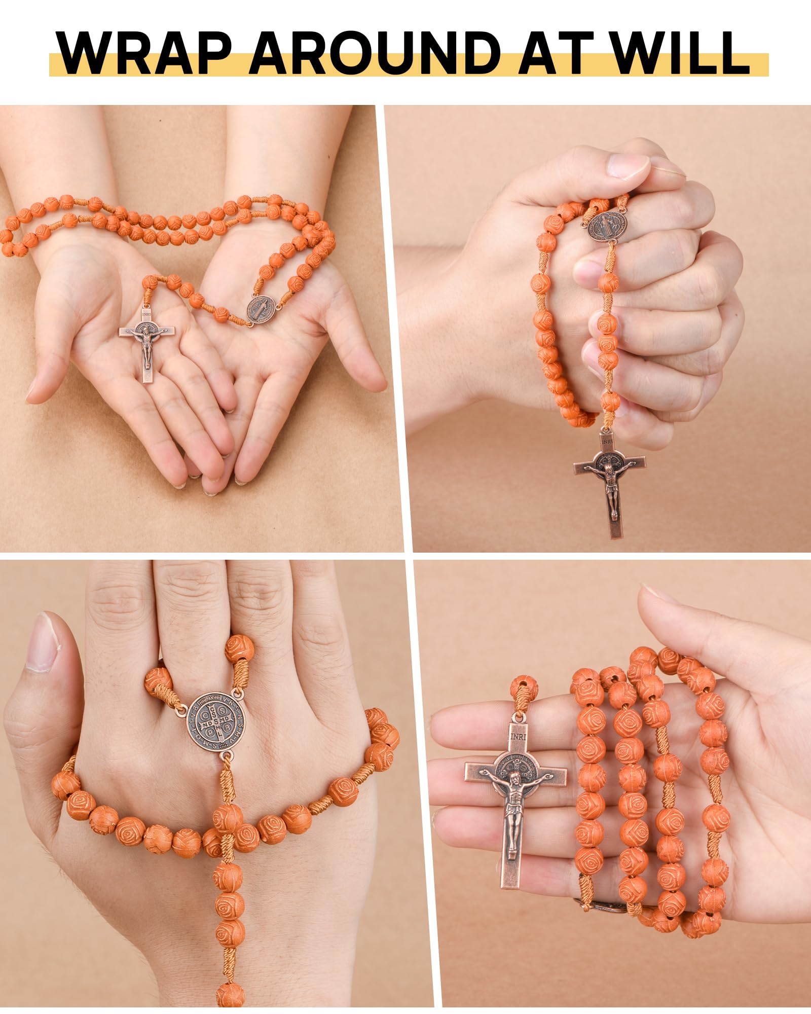 【High quality material】Catholic rosary beads are handmade from high quality hardwood to bring peace and protection to you and your loved ones