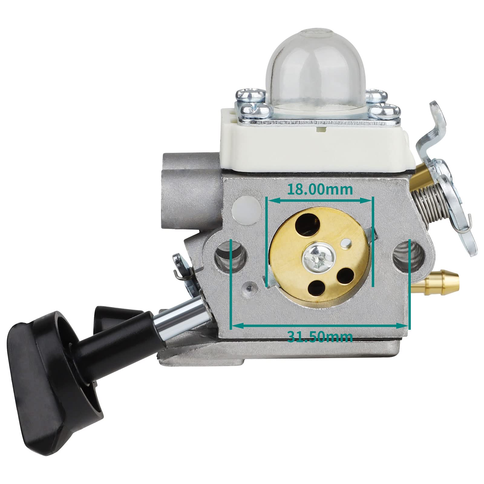 Package including: 1 carburetor, 1 air filter, 2 gaskets, 1 fuel filter, 1 spark plug, 1 primer bulb, 1 fuel line, 1 grommet,1 carb adjusting tool.