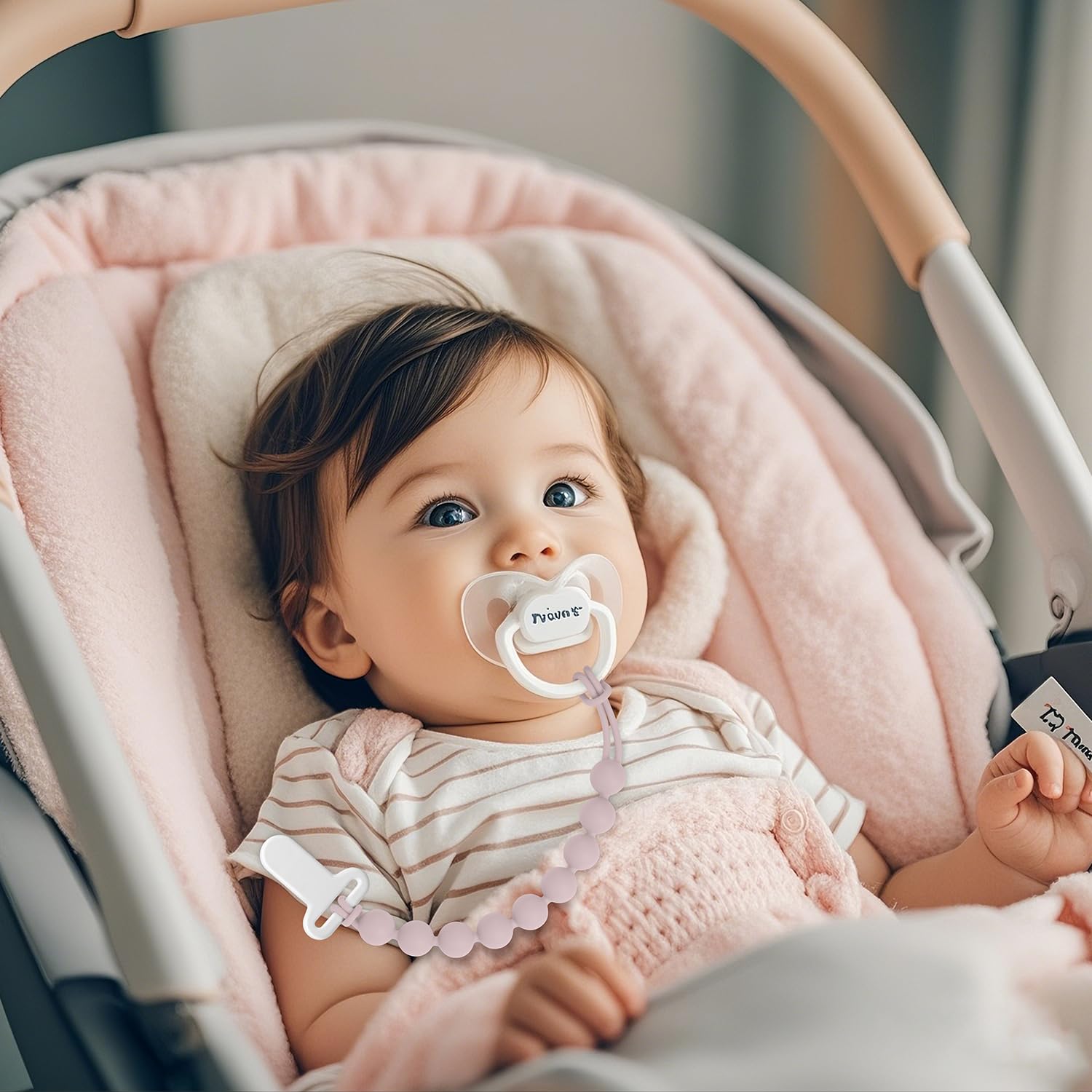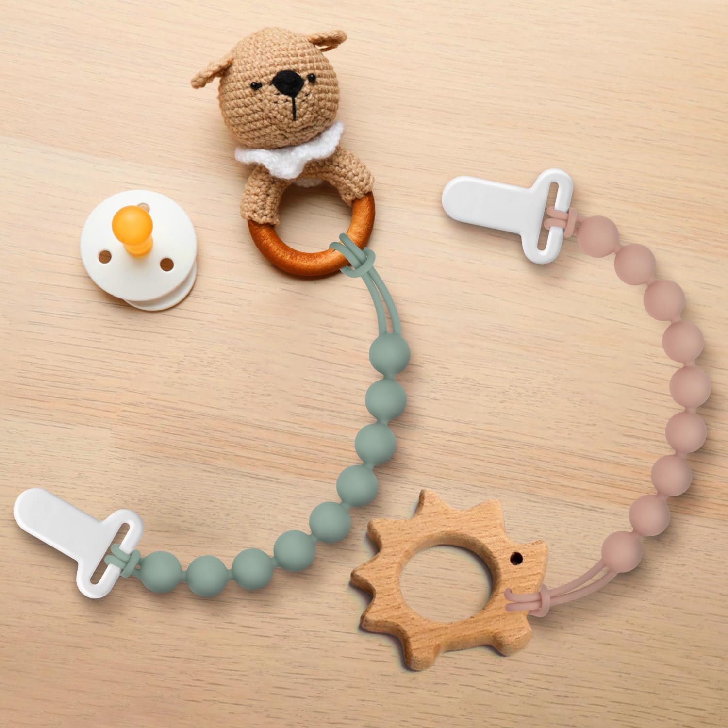 【Unique Design & Perfect for Baby】This pacifier clip not only looks stylish but also supports your baby’s visual perception and sensory development, it features elegant, vintage-inspired colors. this pacifier holder is perfect for babies aged 0-36 months. Its timeless design makes it a favorite for both parents and little ones!