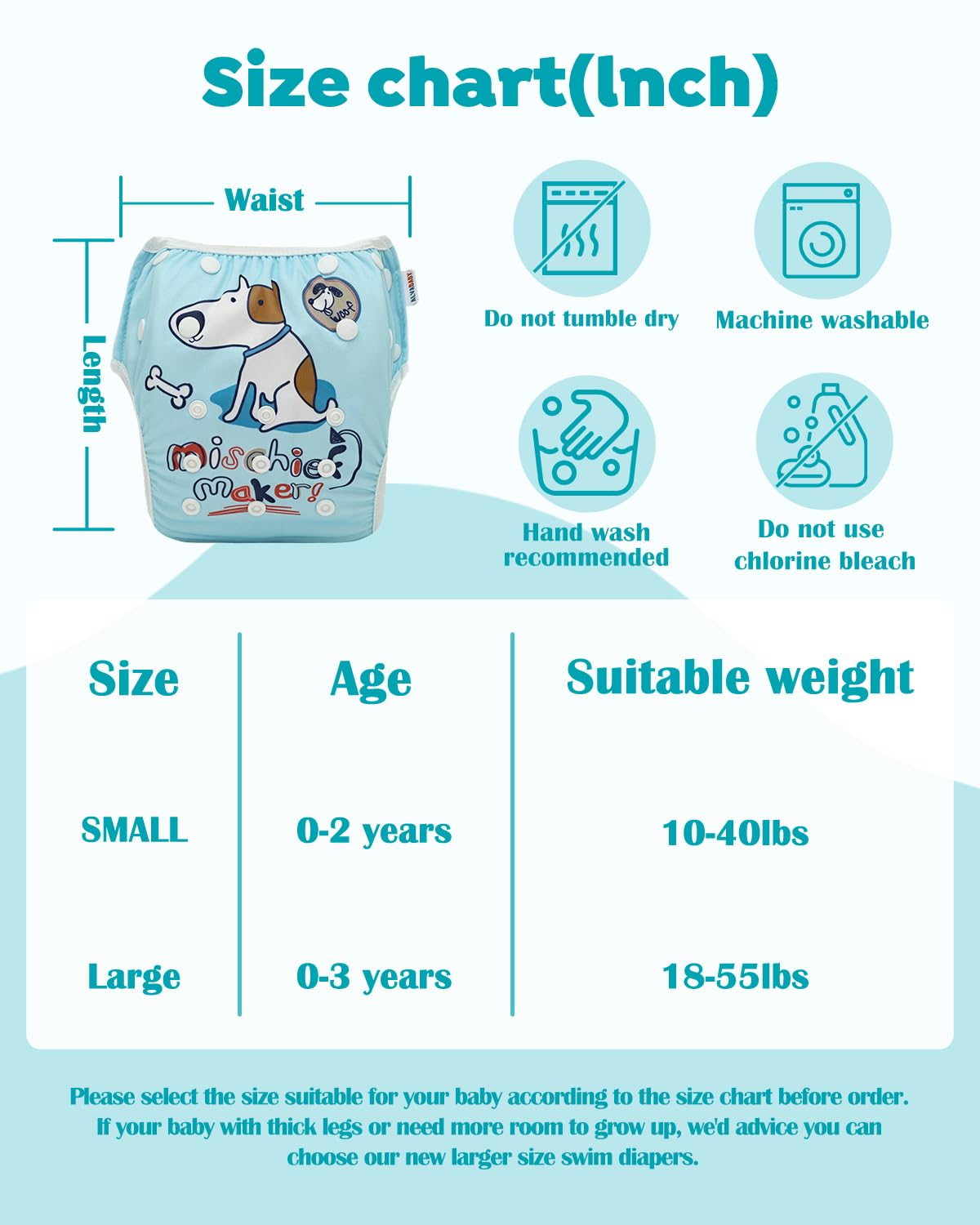 SINCERE SERVICE-If you have any problems with the product, please feel free to contact us, we’ll solve your issue ASAP. Please select the size suitable for your baby according to the size chart before order. If your baby with thick legs or need more room to grow up, we’d advice you can choose our new larger size swim diapers.