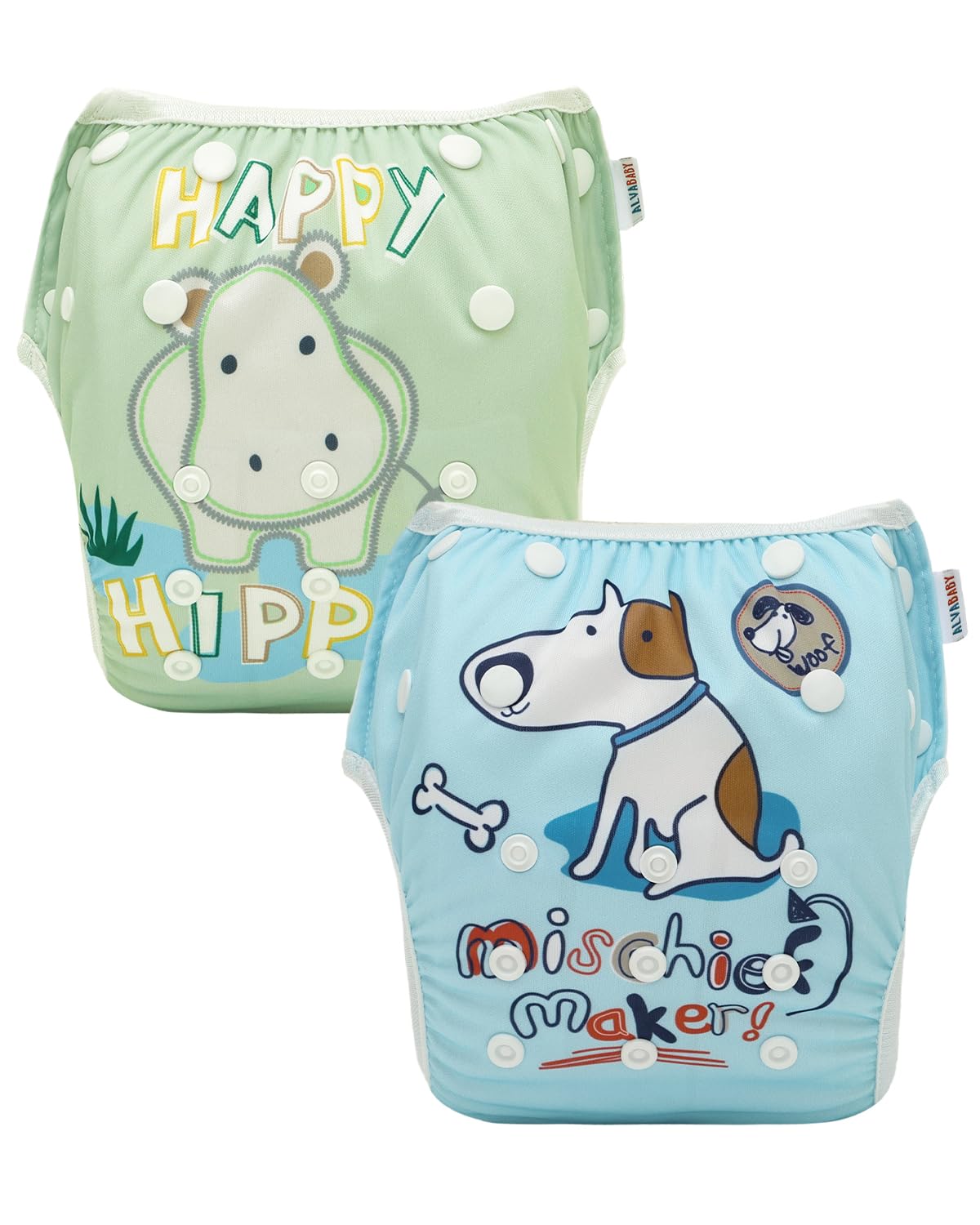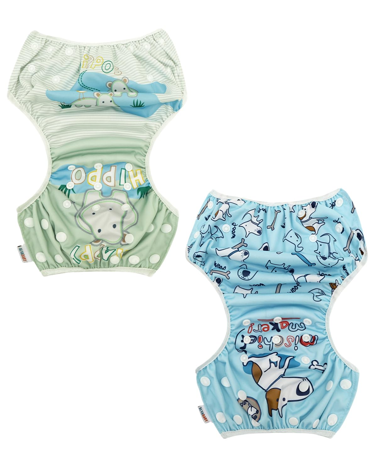 HIGN QUALITY, ADJUSTABLE, REUSABLE & WATERPROOF -ALVABABY swim diapers are made from waterproof 100% polyester PUL outer layer. Elastics waist and legs: Interior Polyester Elastics at the waist and leg openings with soft lycra bindings provides a secure, stretchy fit and easy on and off.