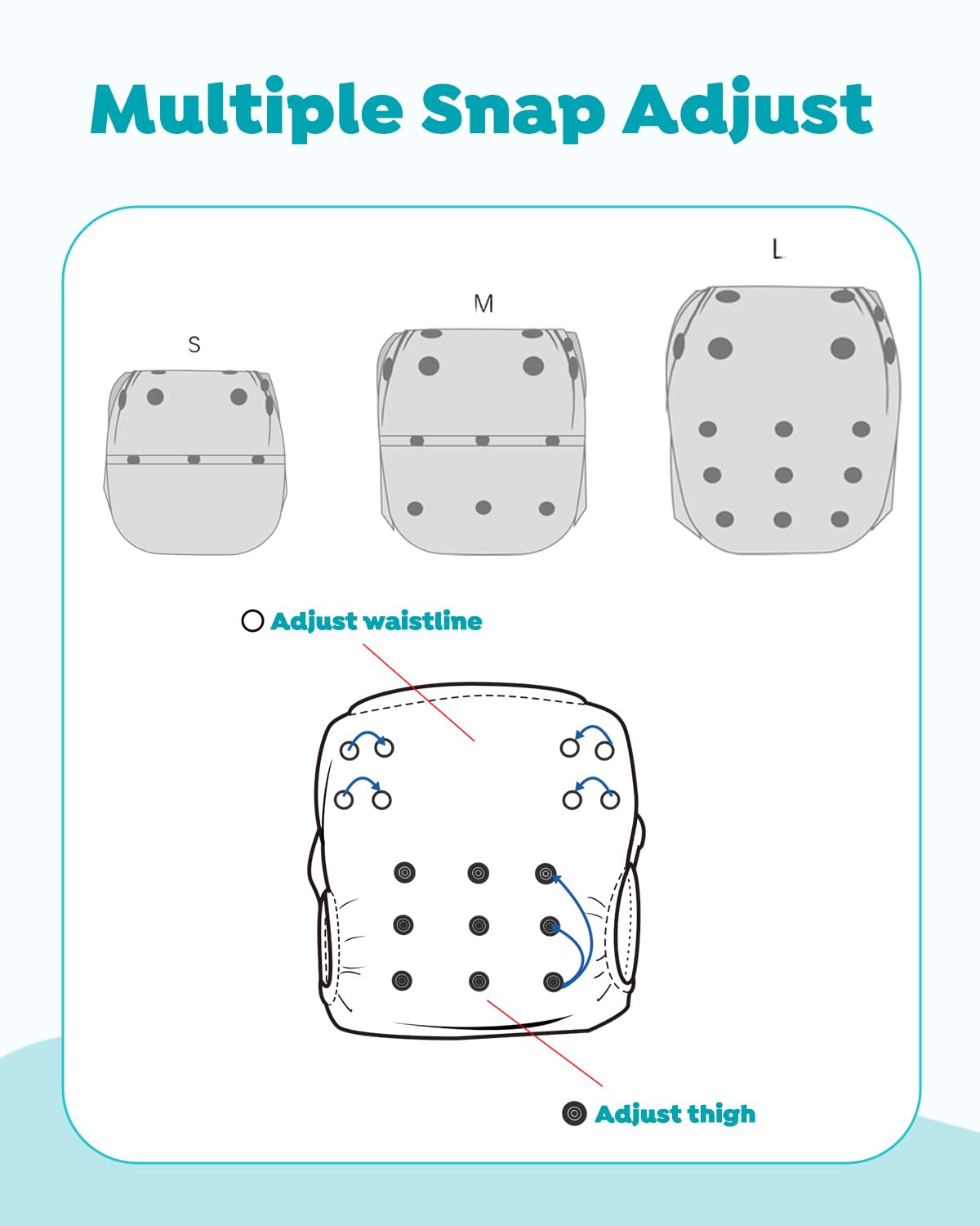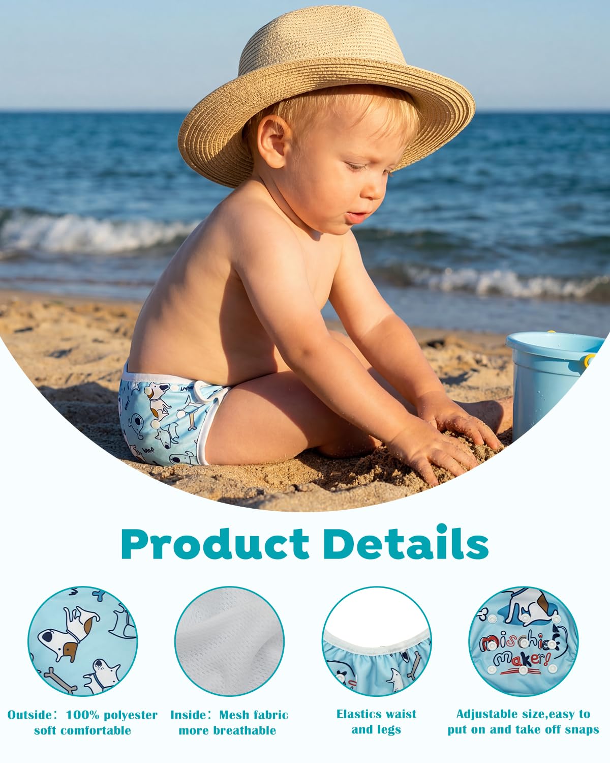 SAVE MONEY & ECO-FRIENDLY-Our reusable cloth swim diapers are designed for families who require premium products. Adjustable for 0-8 months, weight 10-19 lbs, our 3×3 snaps adjust around the waist and legs with three different sizes, and three different size adjustments for the height of the baby swim diapers. No disposable swim diaper, save your money in the long run and advocate environmental protection, provide a beautiful environment for the baby.