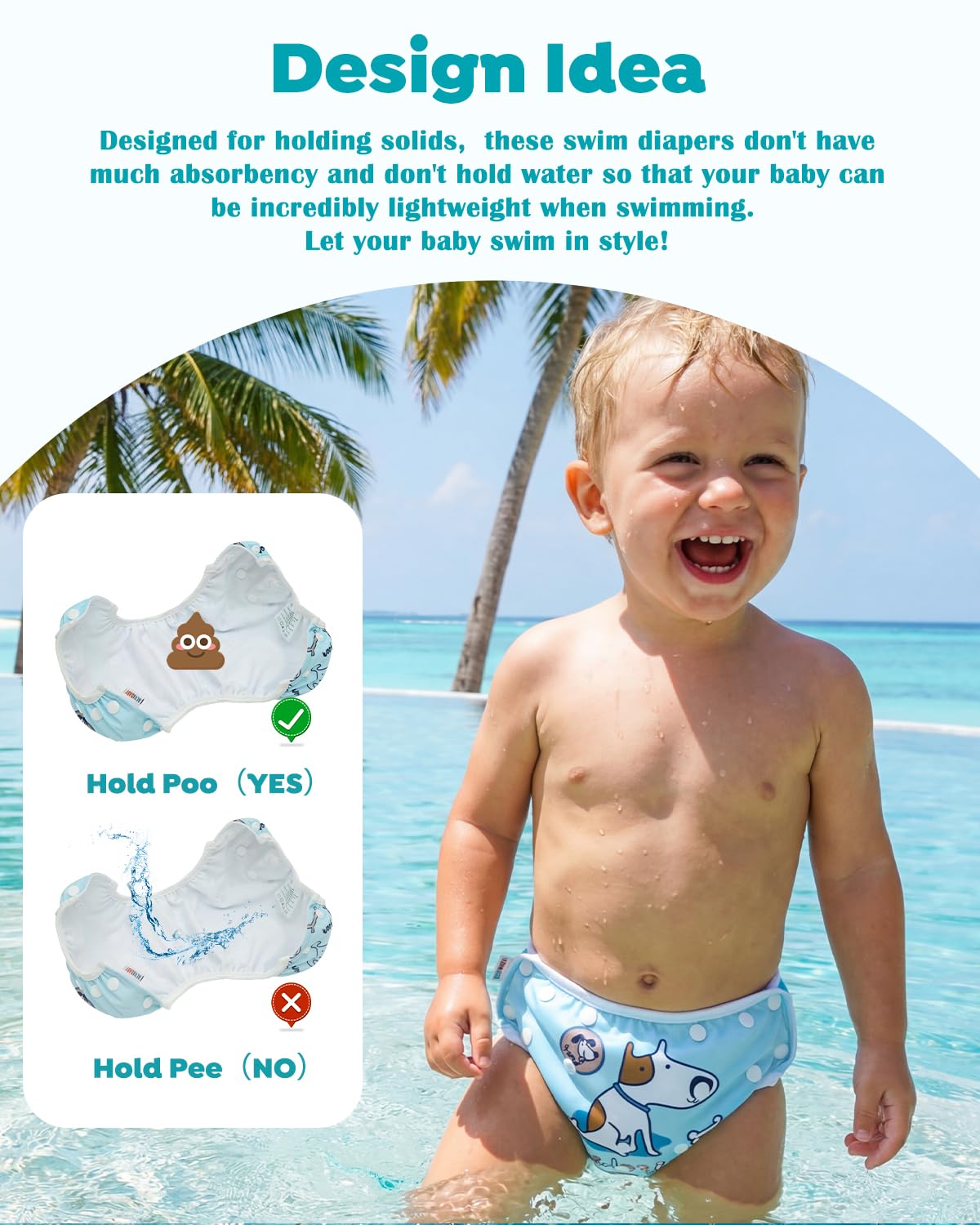 NJOY SWIMMING-Our swim diapers designed for holding solids,these swim diapers don’t have much absorbency and don’t hold water so that your baby can be incredibly lightweight when swimming. Let your baby swim in style.