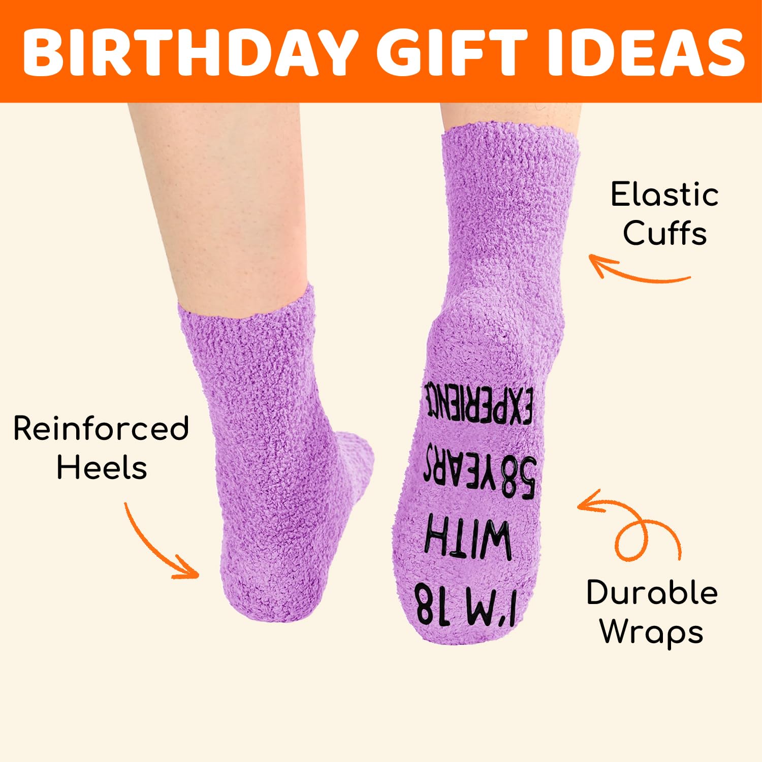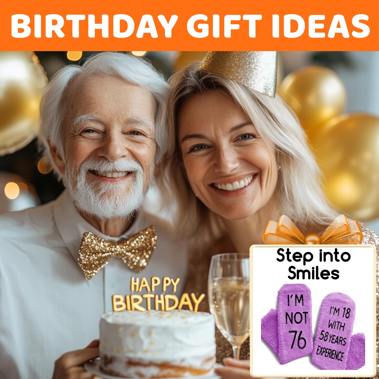 GIFTS FOR HER: Say it with socks - "I'M NOT 76, I'M 18 WITH 58 YEARS EXPERIENCE." These are suitable for any holiday gifts, such as Birthday gifts, White Elephant gifts, Christmas gifts.