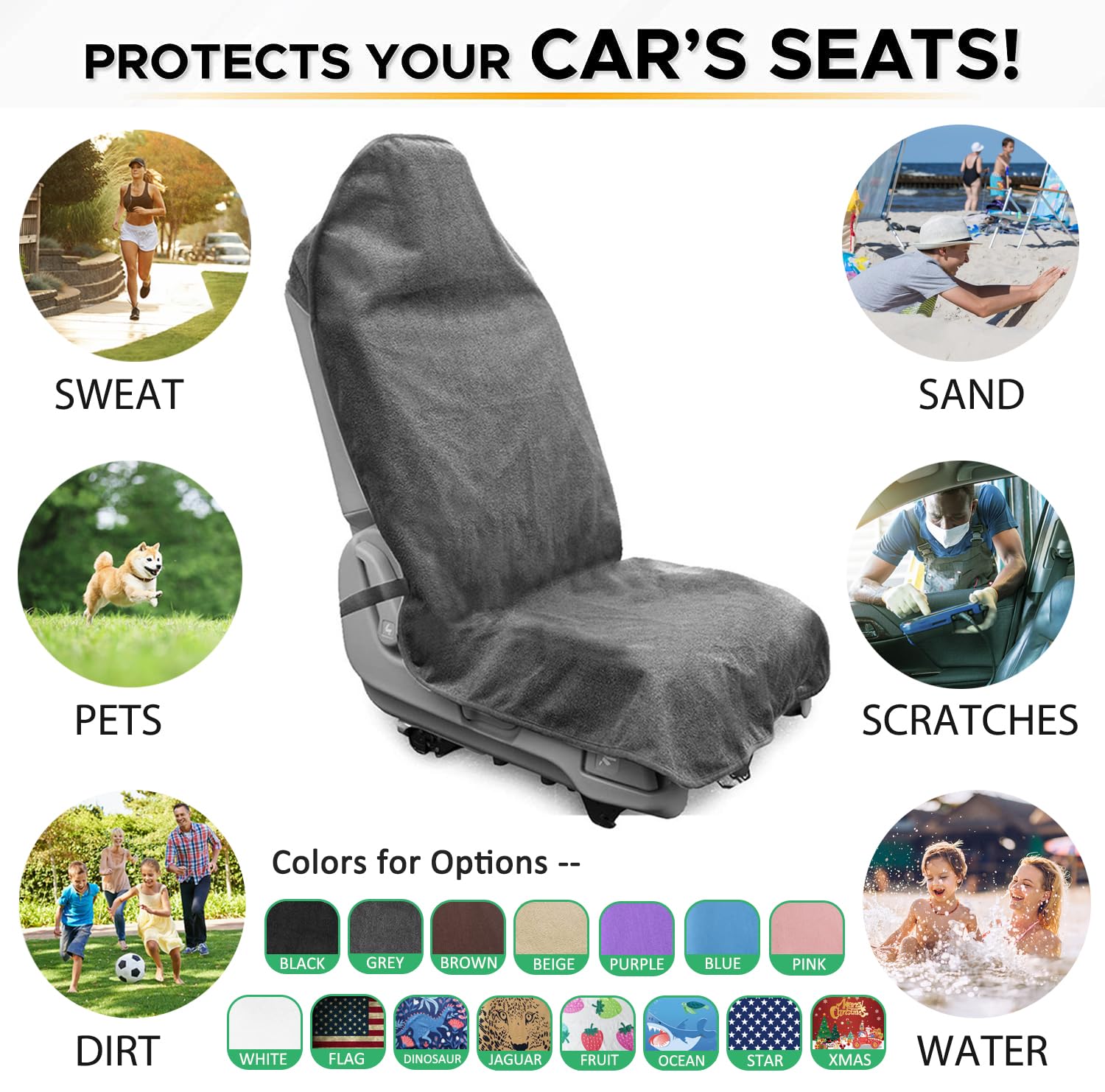 【Comfortable Touch & Anti-Slip】Our (front) material is made from a towel cloth material and designed for maximum comfort during your driving. It’s also incredibly soft and smooth to the touch.It's also super comfortable and will not slip off your seat because of the (back)Anti-Slip Backed Fabric.