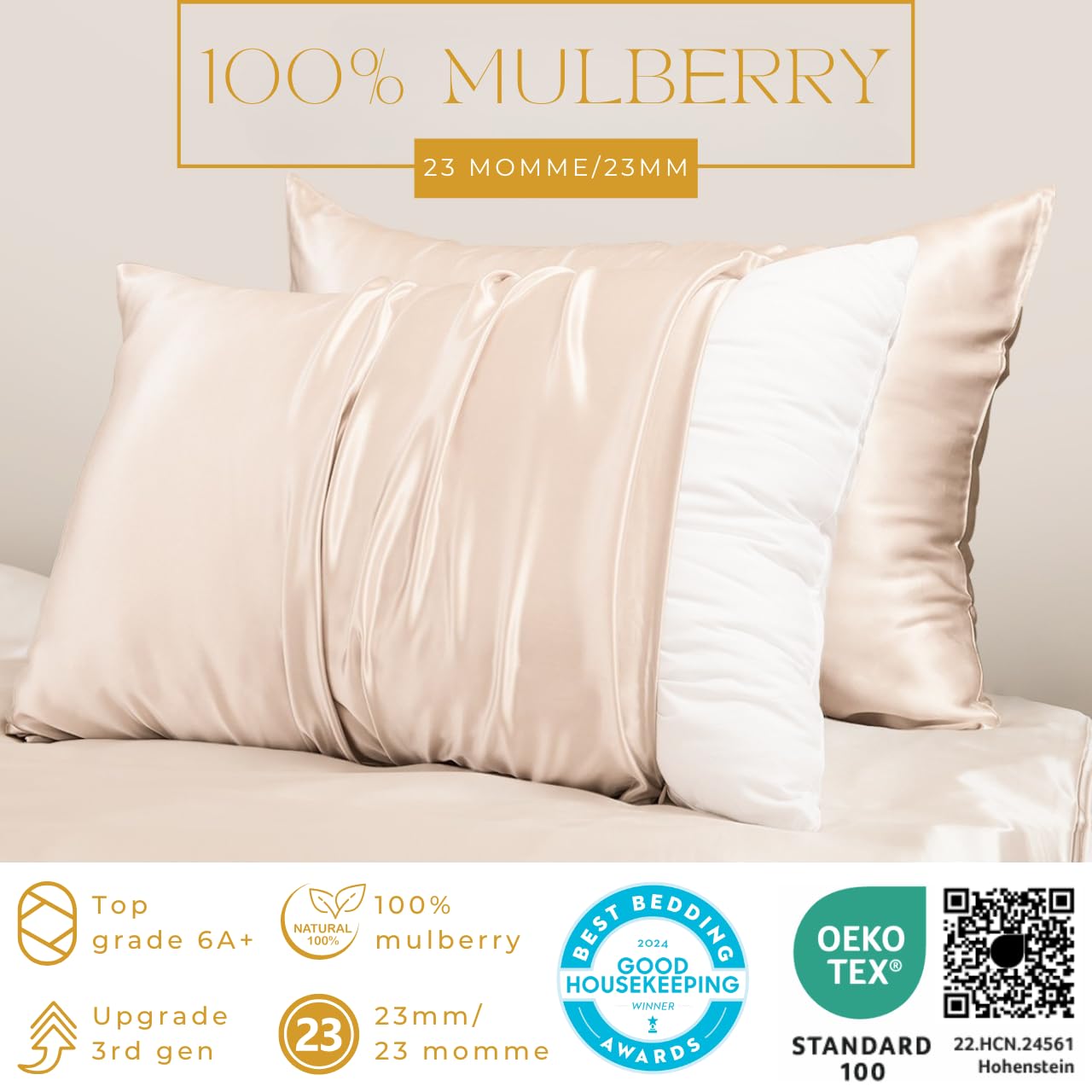 【GOOD HOUSEKEEPING BEDDING AWARDS 2025-BEST VALUE 100% SILK PILLOWCASE】PROMEED MULBERRY SILK PILLOWCASE was rated smooth by sleep testers; Perfect moisture-wicking scores; Good assortment of sizes and configurations