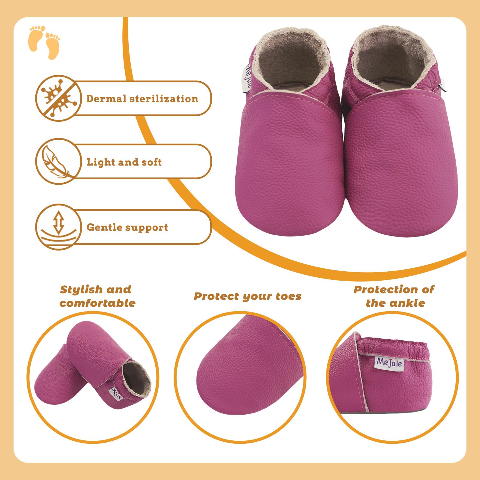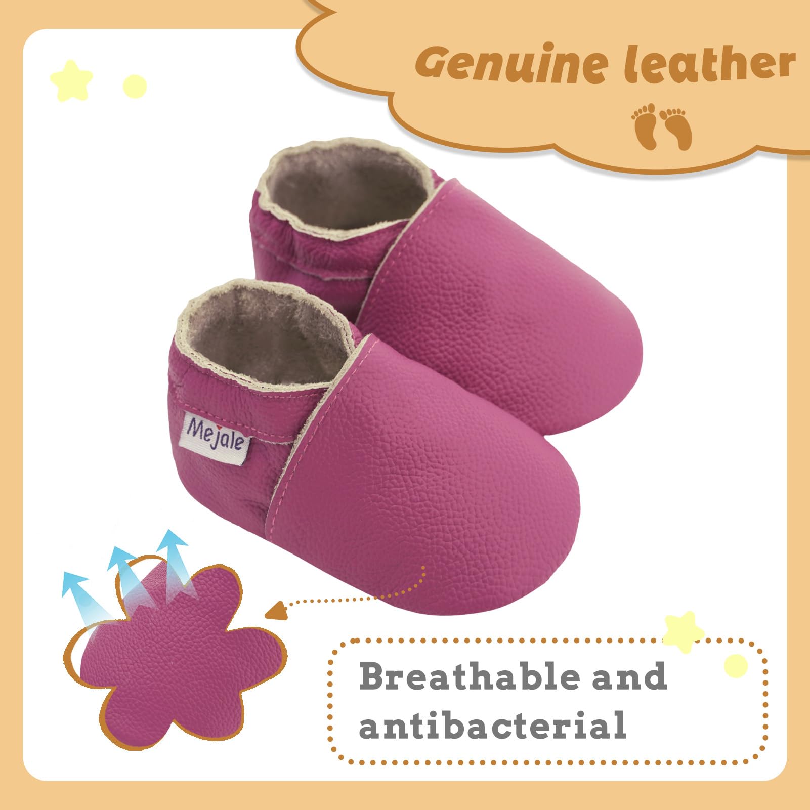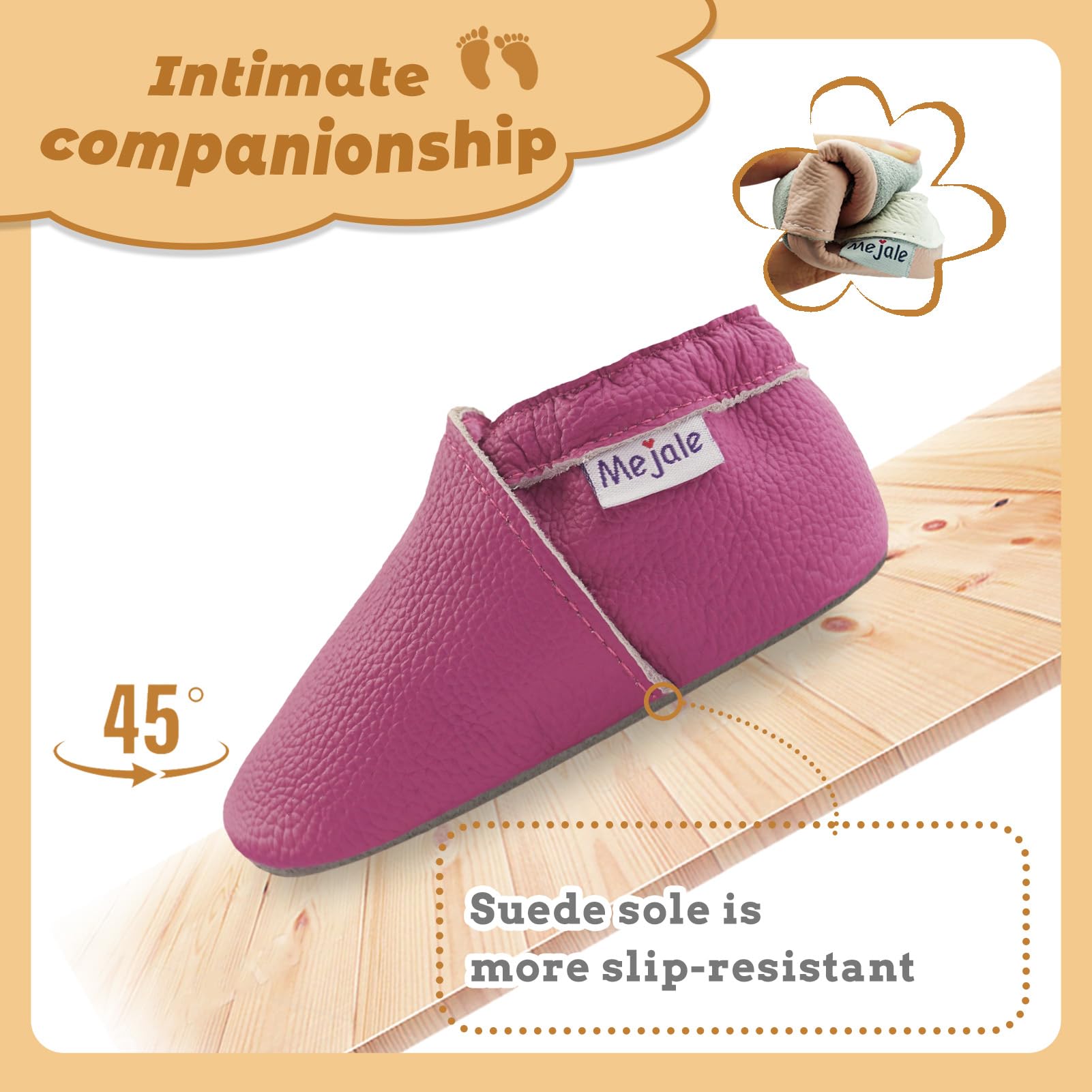 ♥Made of genuine soft Leather, slip-on shoes with elastic ankle, great shoes between a sock and a shoe for beginning crawlers and walkers. The moccasins soft leather can protect the baby's feet and enable them to learn to walk in a positive and natural manner