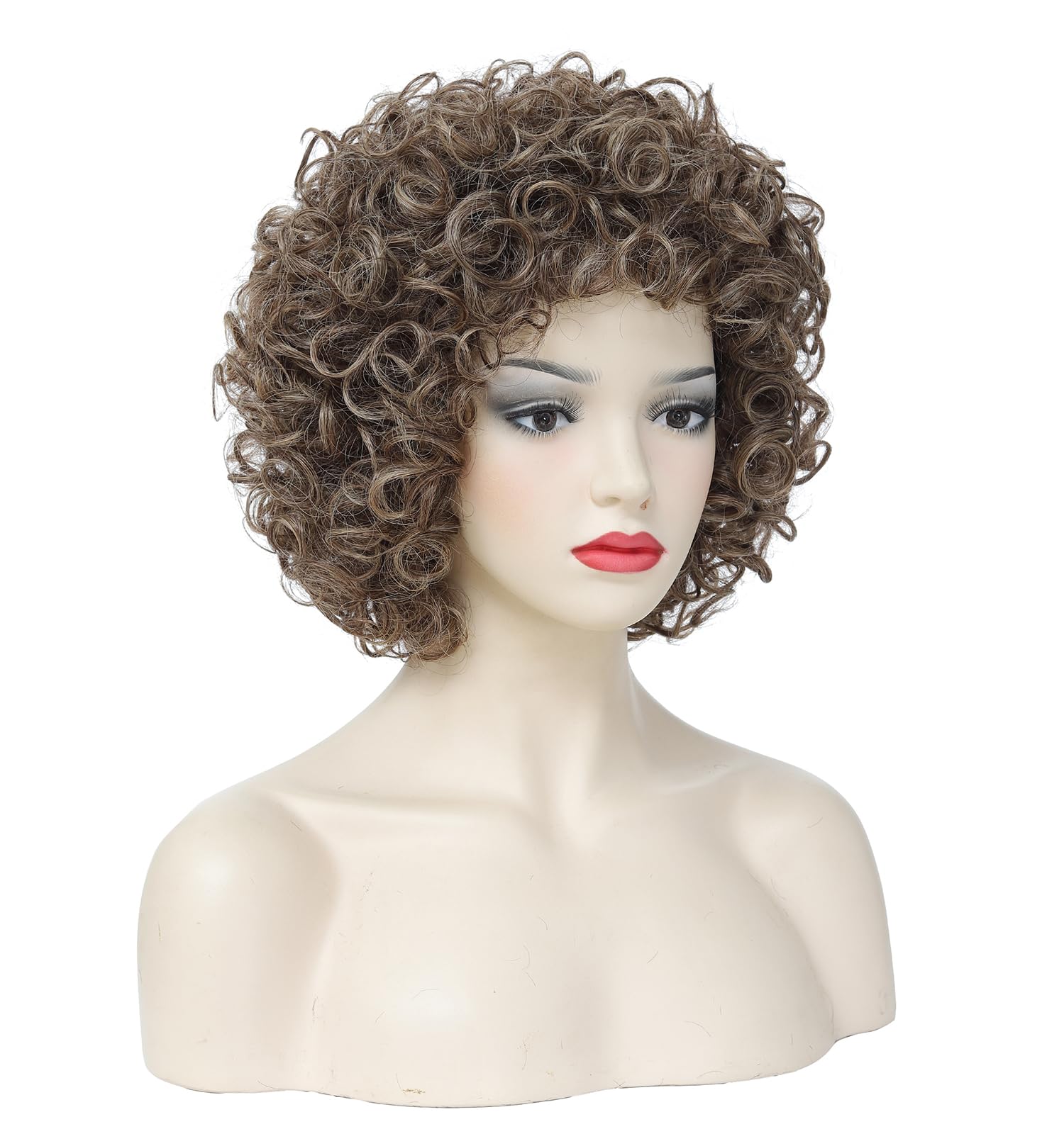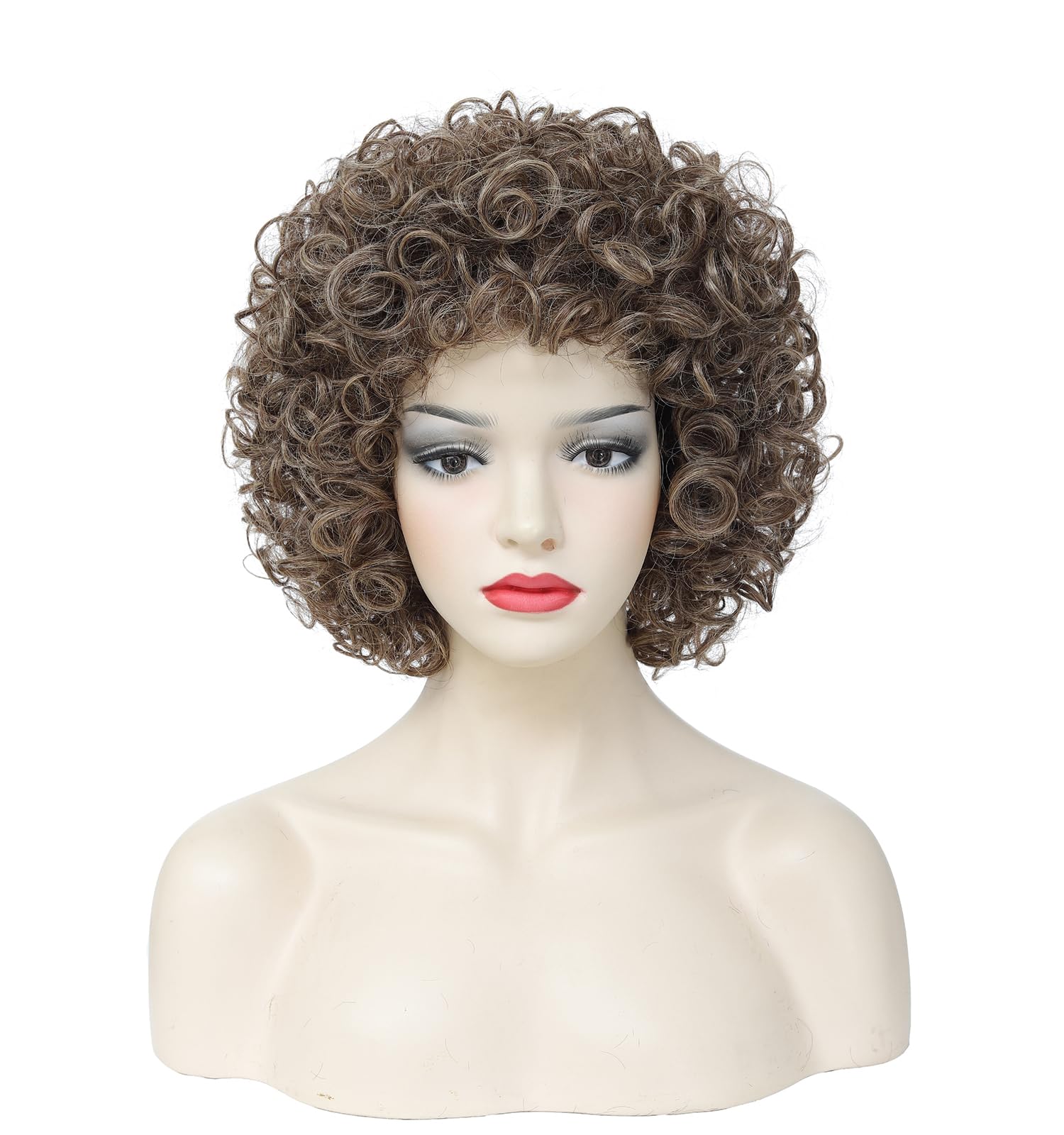 Change your look with this vibrant short curly synthetic wig, which features stunning light brown/orange tones. This multi-functional wig is suitable for daily wear, parties, Halloween costumes and cosplay events, offering a medium-density look. The adjustable hair band design suits most head circumferences, making it comfortable to wear. The curly texture creates spatial movement while maintaining its shape. Suitable for adult women, this wig combines the diversity of styles with practical functions. Made of high-grade synthetic fibers, it ensures long-lasting durability while maintaining its unique curly pattern and bright colors.