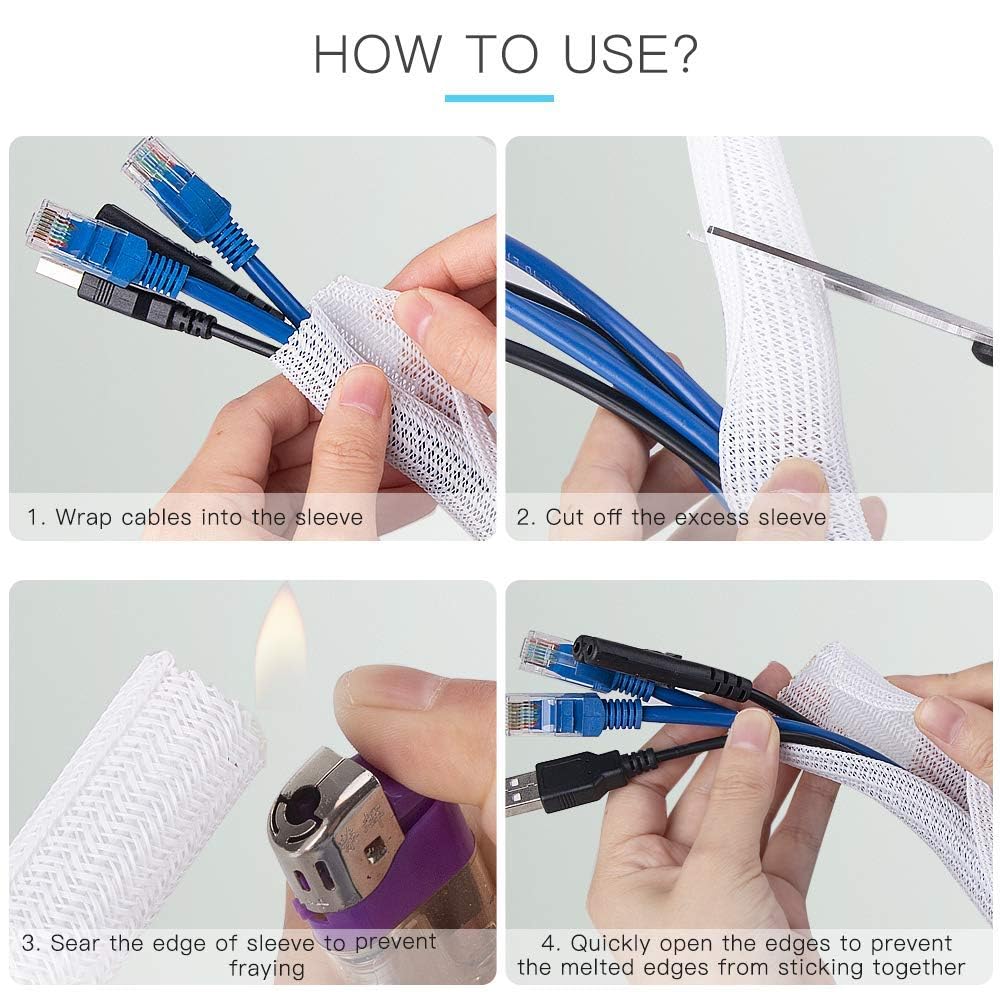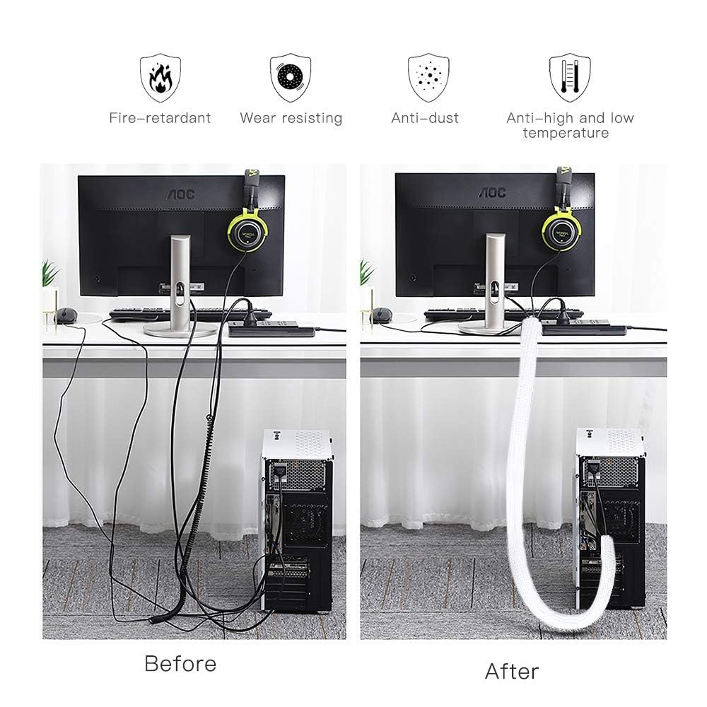 【Wire Cover for Many Cables +Easy to cut 】The cable tube can be easily cut with scissors. Length: 10 feet. Diameter: 0.8 inch. They can hold different sizes of cables for you. Especially suitable for corners (it is recommended to cut the cutting position with fire after cutting to prevent spreading)