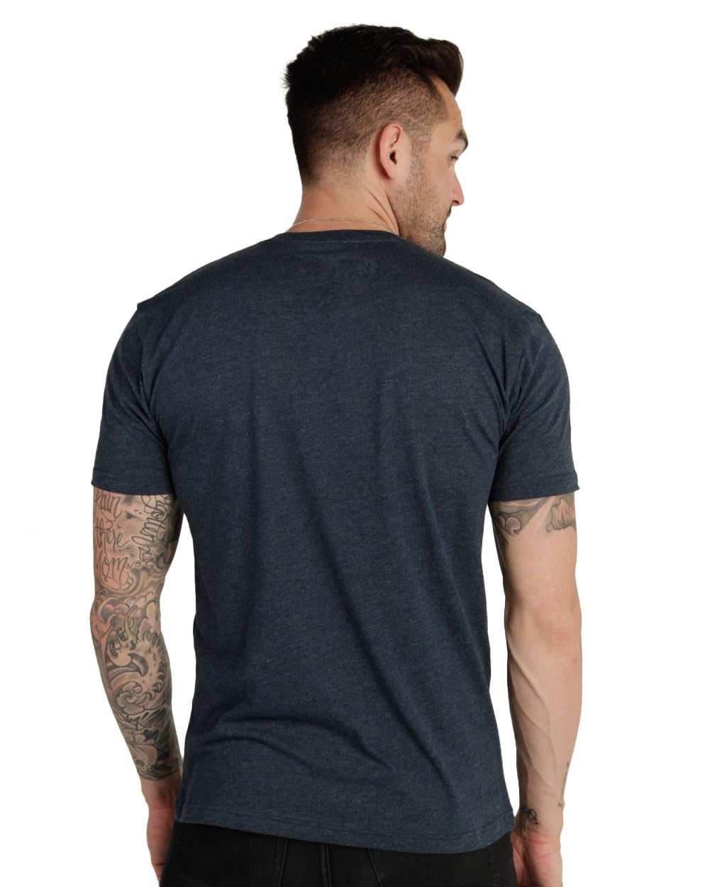 Tailored Fit – Highlights arms and shoulders while leaving room at the midsection