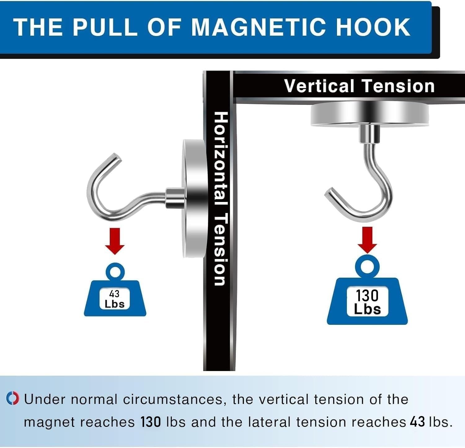 【WIDE APPLICATION】Wherever there is iron or steel, the strong neodymium magnet hooks for hanging items you want are easy to install and use without drilling. Our metal magnetic hooks are suitable for garge, refrigerator, grill, tool room, kitchen, magnetic hanger and also can be used magnetic key holder.