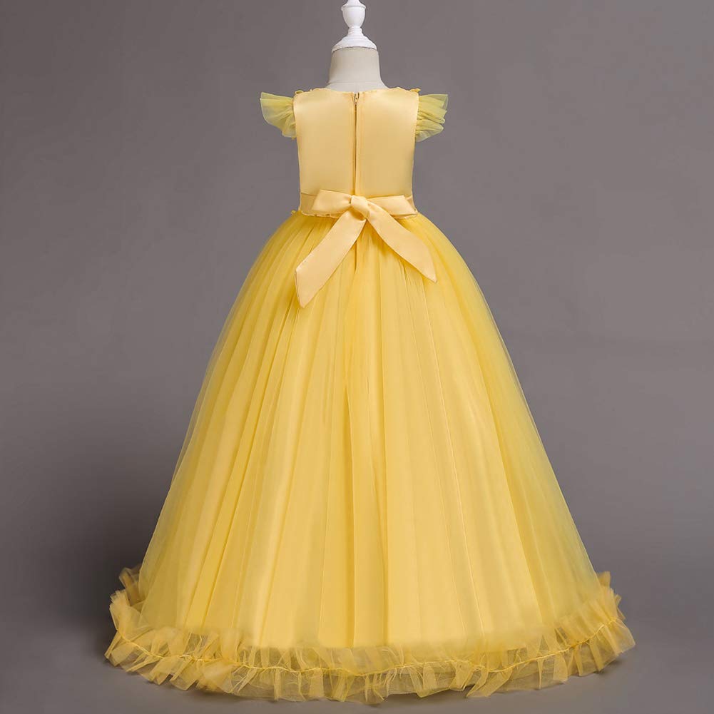 Kids little big girls sleeveless round neck princess dress tulle spliced full length evening party prom gown, elegant and gorgeous design,Carnival Event birthday party fall dressing up clothes,it will make your girl beautiful and feel like a princess