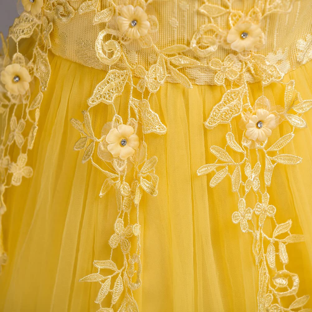 Mesh spliced bodies with soft lining, adds ruffled tulle details at sleeve, tops embellished with beautiful flower, faux rhinestone and embroidered patchwork at front,Designed with concealed zip-back fastening, the sashes are attached at the side seams and can be tied a bowknot at back.This dress contains 2 layers tulle, 2 layers soft lining, and 1 layer netting attached on the innermost fabric adds to a fuller look
