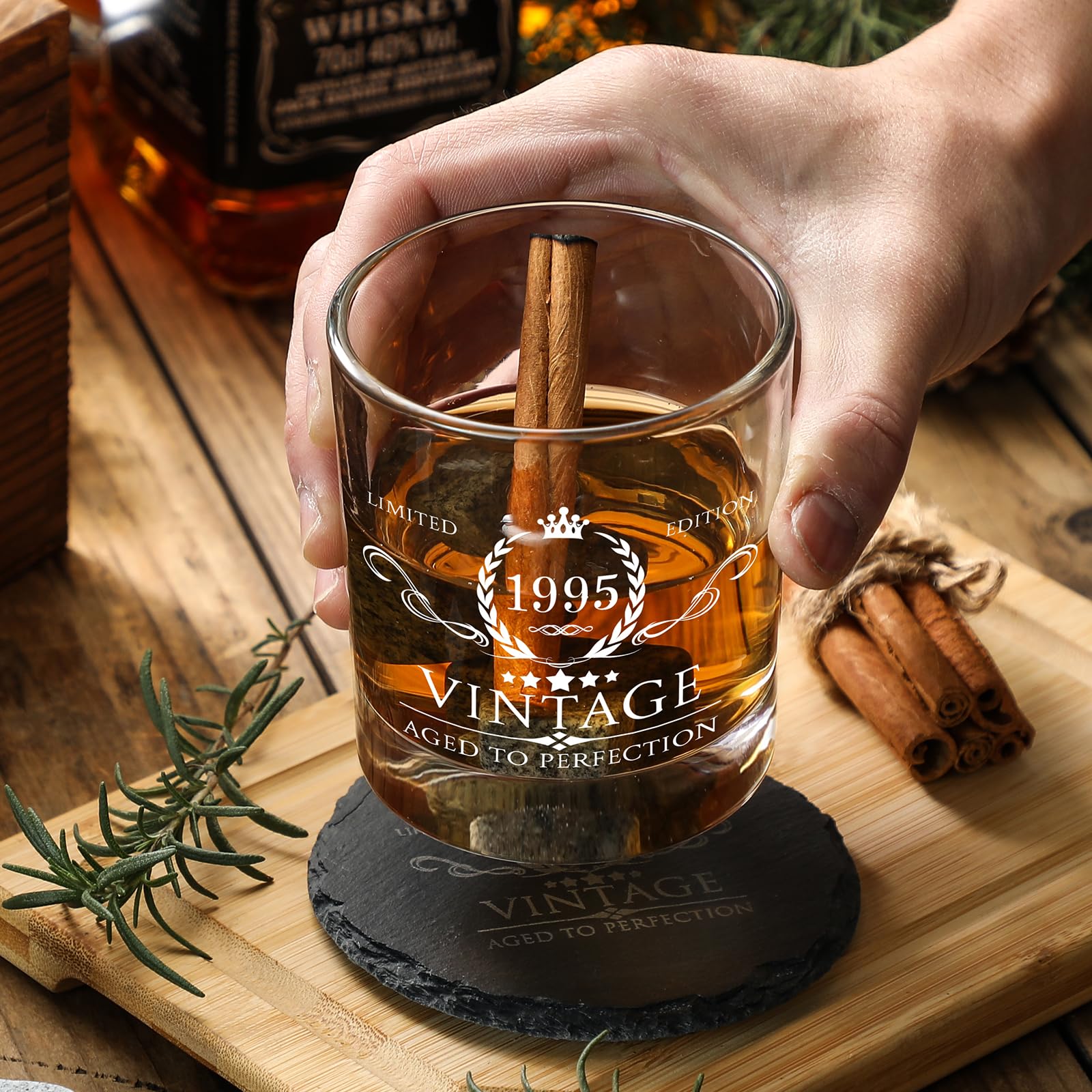 Unique Limited Edition Logo - Except the stones and card, all other parts are printed with pattern (refer to the images). Especially the milestone whisky glass cup, with the 1995 year engraved on it, the unique '1995' sign represents the 30th birthday or 30th anniversary day.