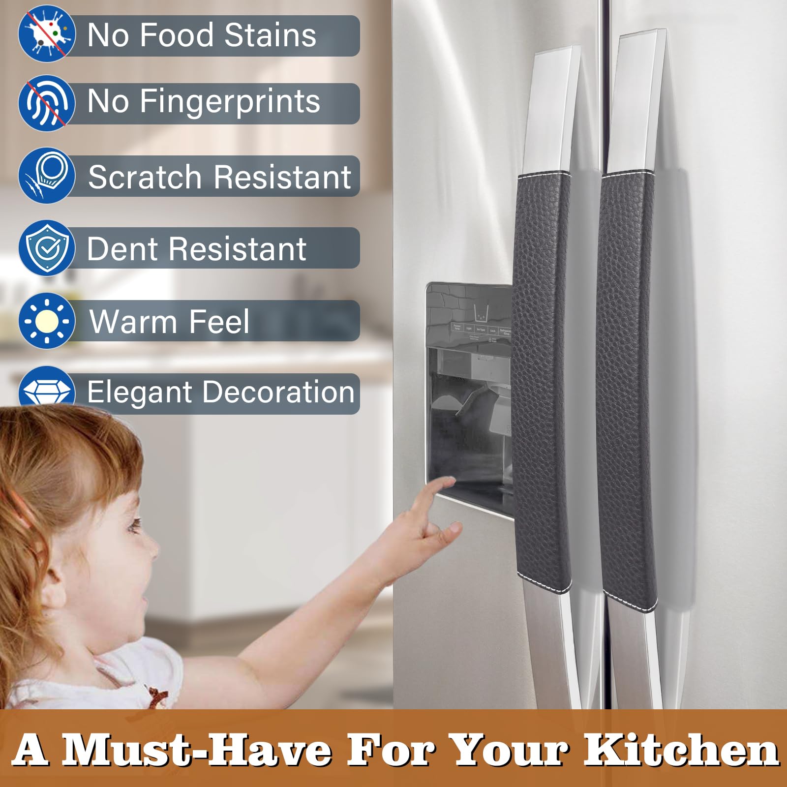 【PROTECTIVE & DECORATIVE】 - The handle protector is a terrific way to keep fingerprints and smudges off the stainless steel appliances, protect kitchen appliance handles from getting dented or scratches, add a pop of color to your kitchen decor.