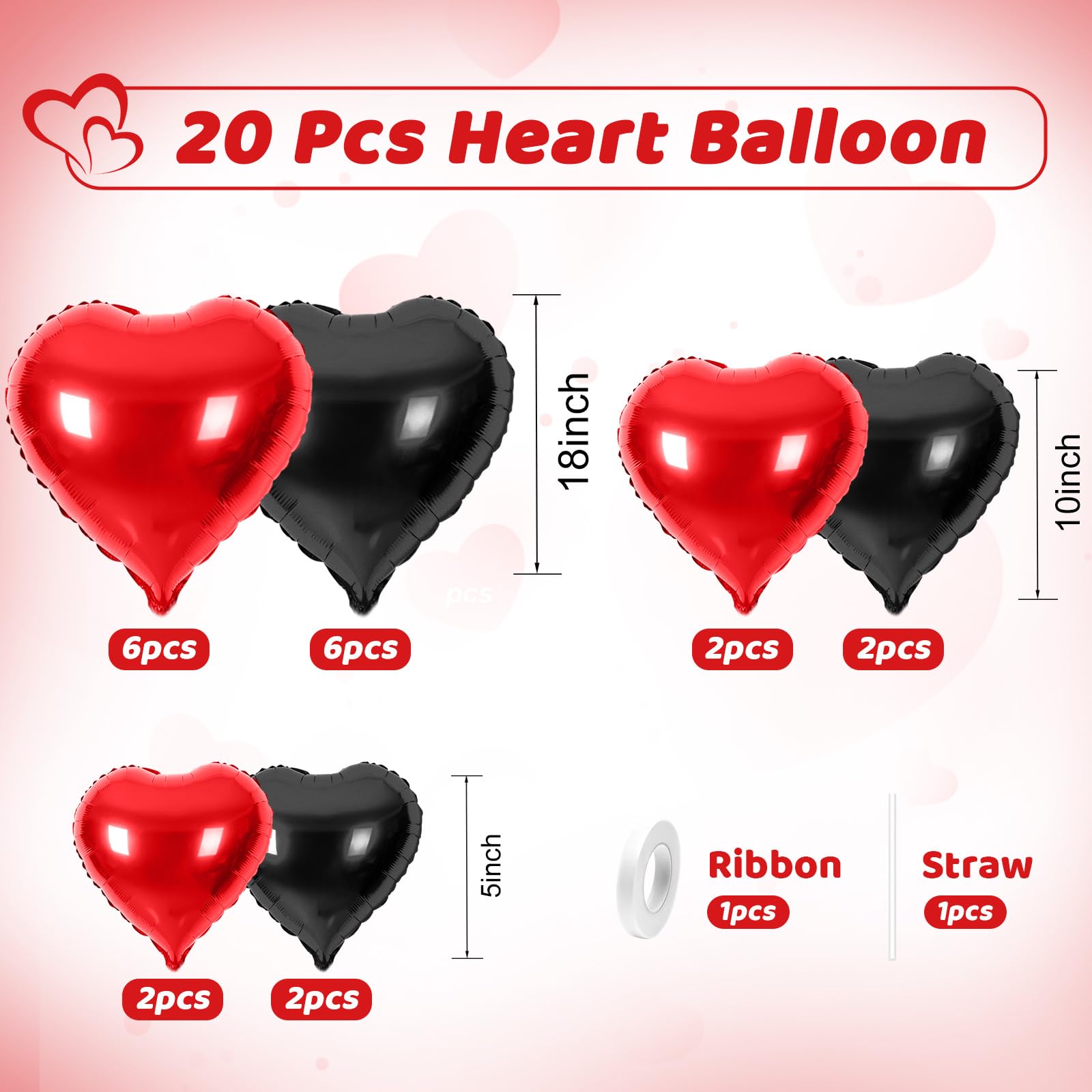 Heart Balloon Set: This set includes 20PCS heart-shaped foil balloons in three sizes: 5 inch,10 inch,and 18 inch. The diverse sizes make it easy to create layered and dynamic decorations for your events.