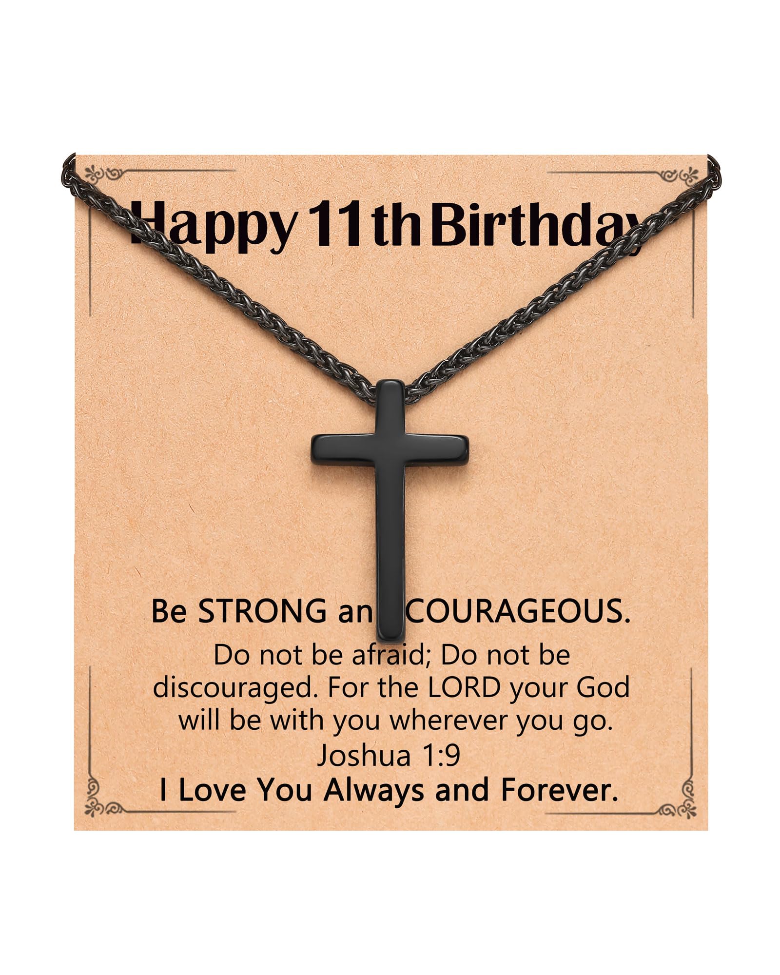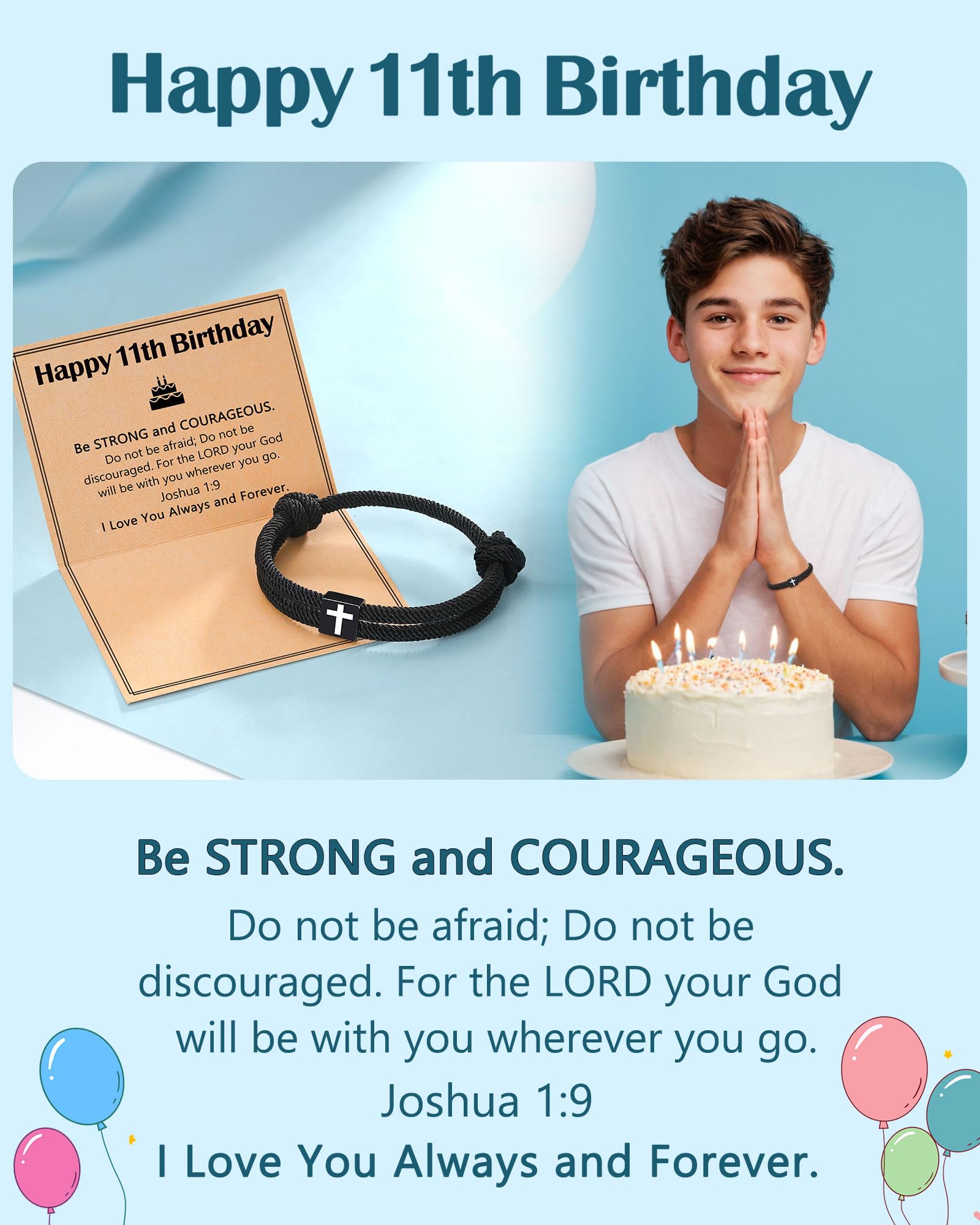 【11 Year Old Birthday Gifts】Happy birthday! Celebrate his birthday with this black cross bracelet, it Includes another thoughtful birthday blessing, “I Love You Always and Forever,” which combines love and encouragement.