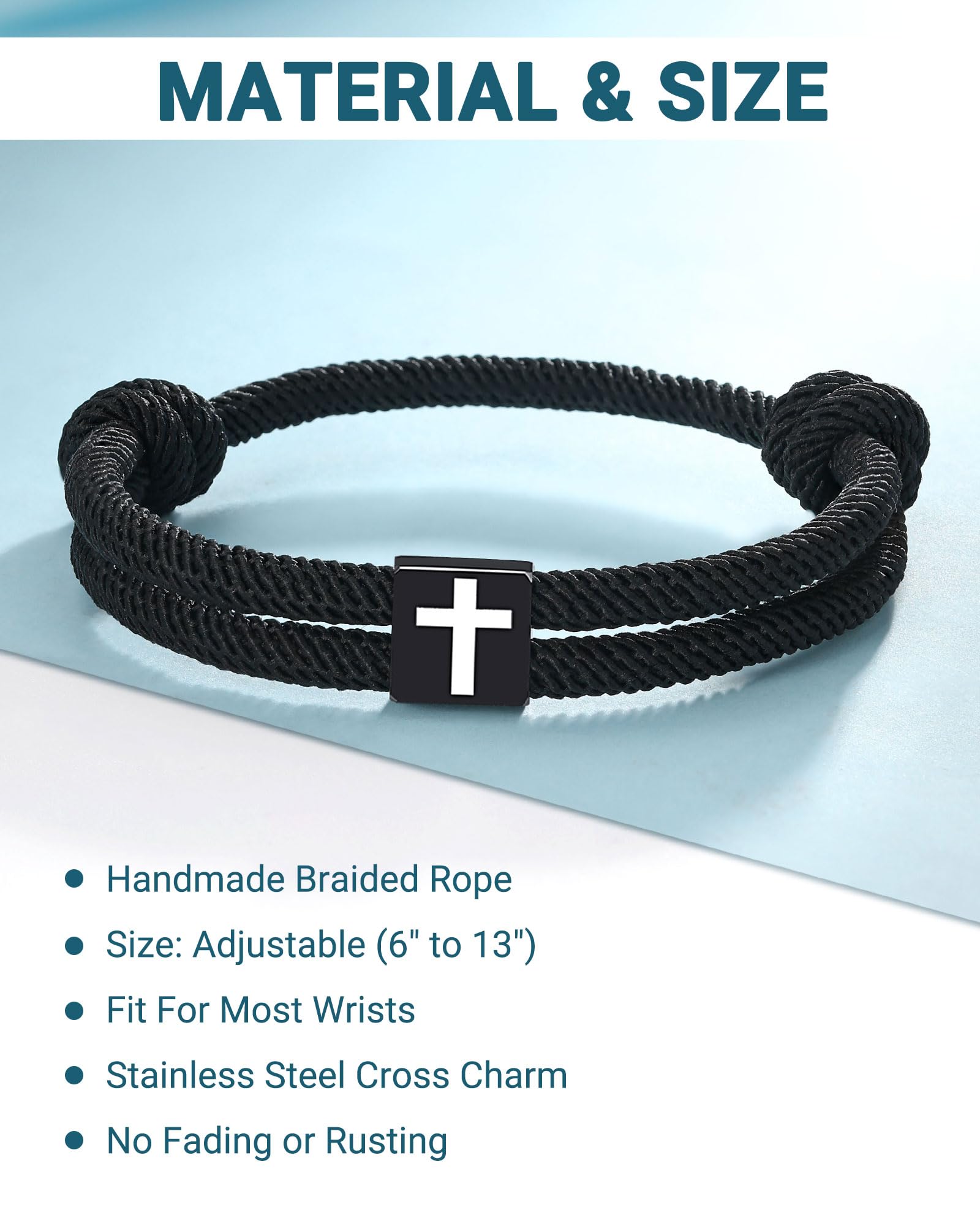 【Stylish Bracelet】Made with a braided rope and a simple cross charm, this bracelet is strong and sturdy. It is comfortable to wear and not easy to break.