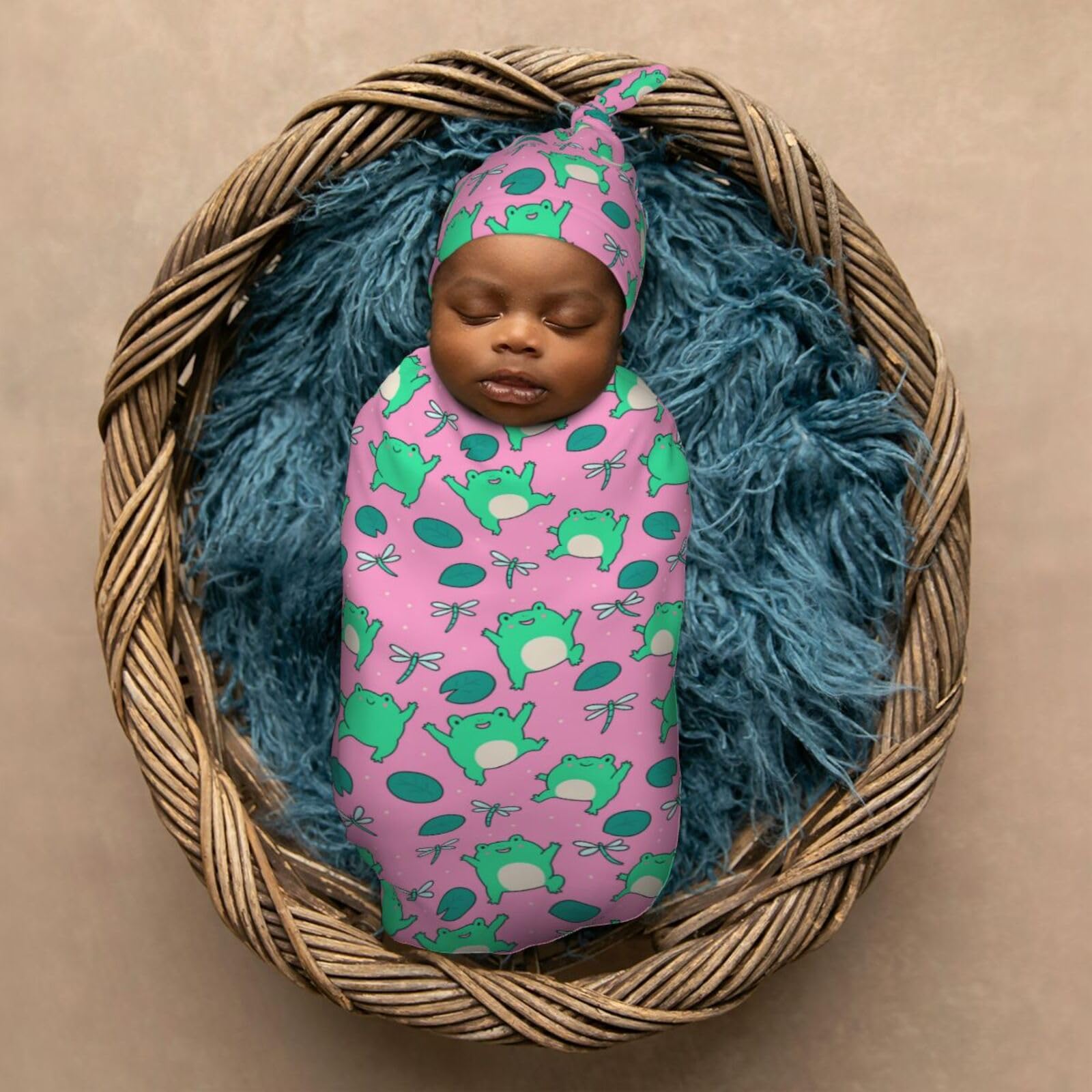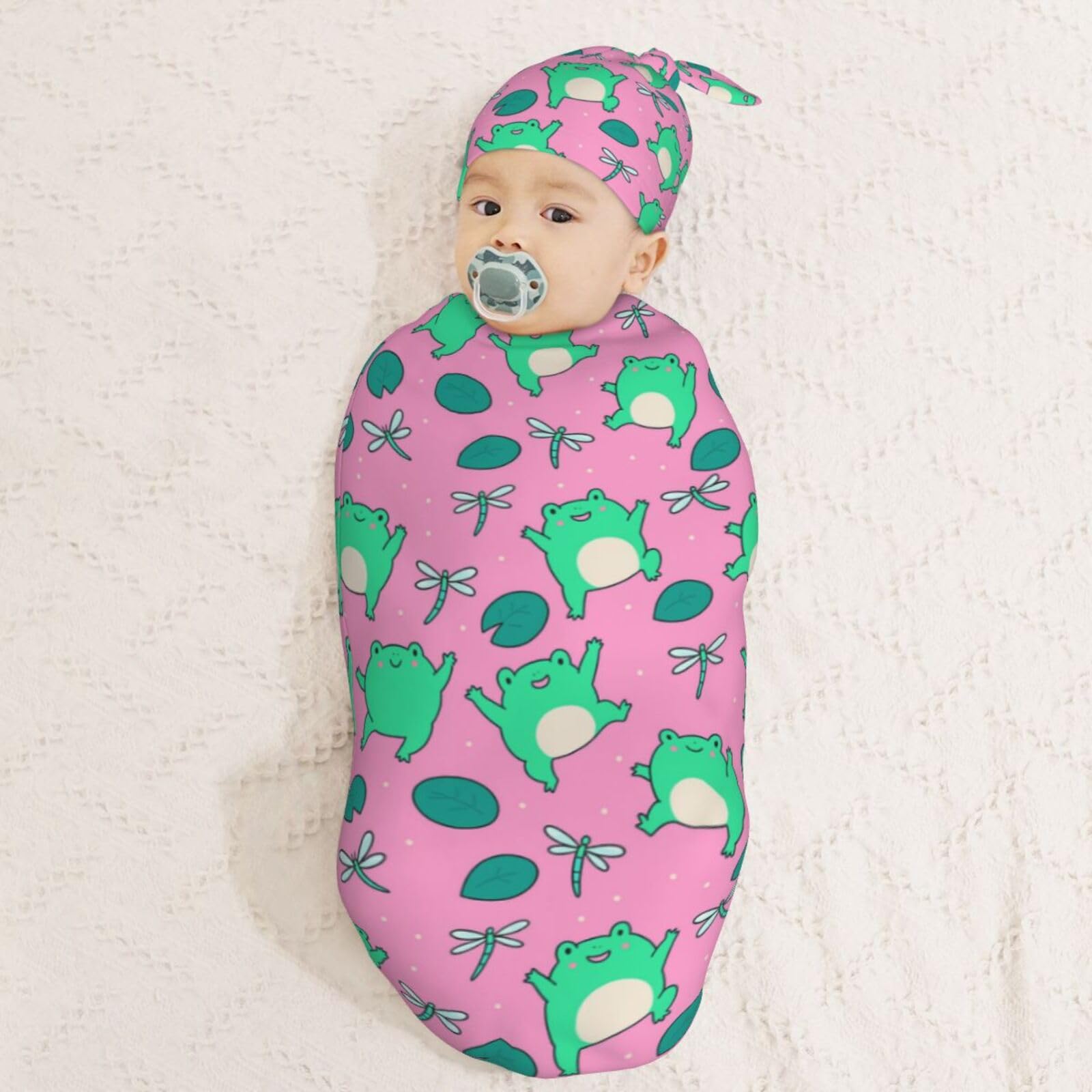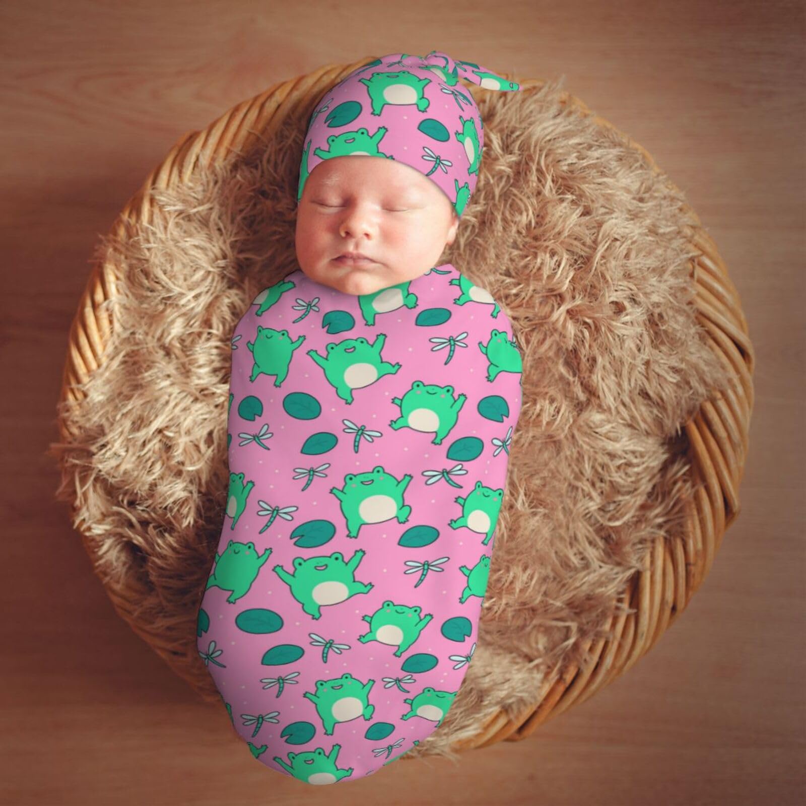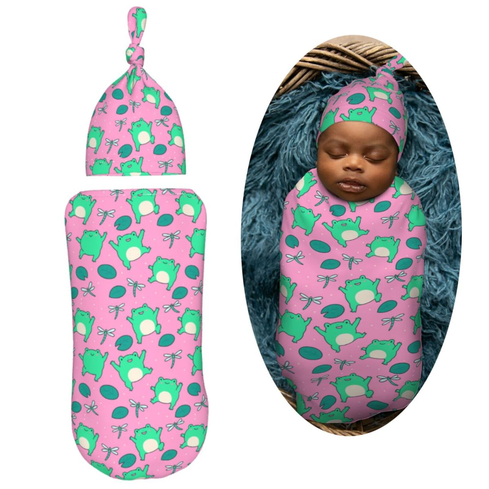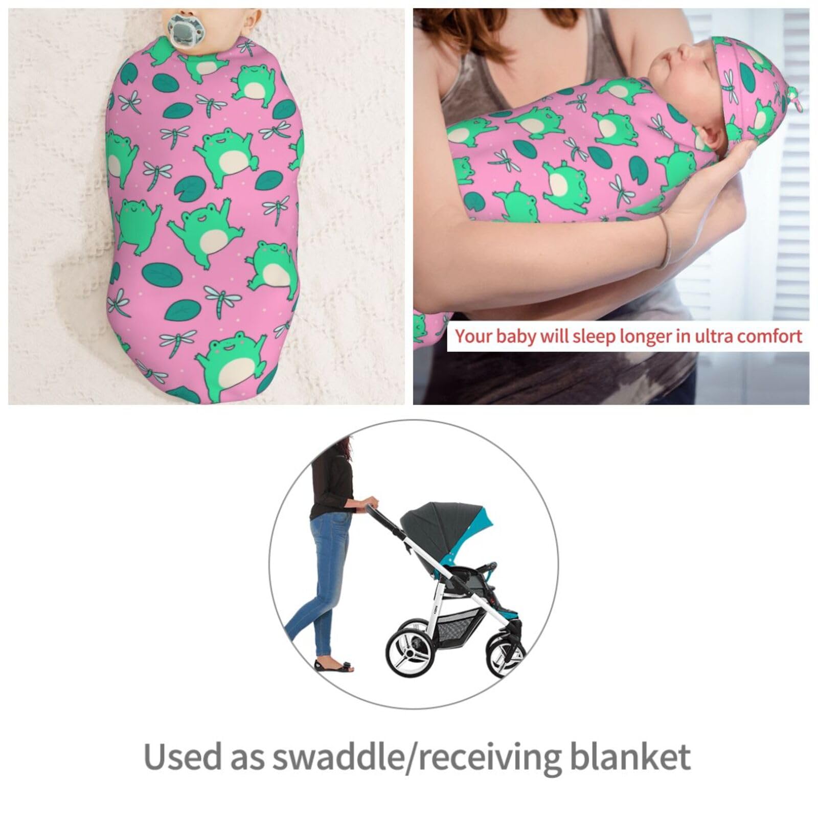 Material: This Who Love Cute Green Frogs On Pink Newborn Baby Swaddle Blanket And Baby Hat Set Is Made Of High-Quality Polyester, Which Is Very Soft And Skin-Friendly, Swaddle Bags Blanket Has Good Warmth And Elasticity, Keeps Your Baby Perfectly Wrapped, Cozy, And Sleeping Peacefully.