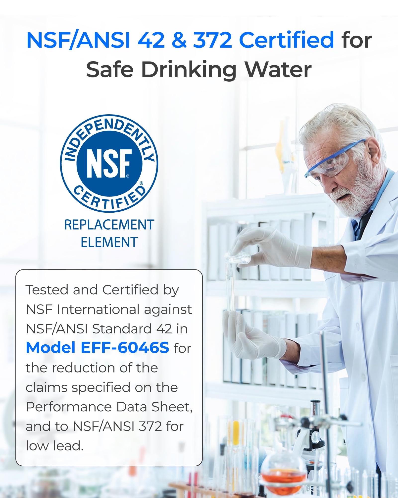 [360°comprehensive protection] Be aware of the claimed certification. Our filters are comprehensively certifiedby the NSF 42&372 test from each components to the filter cartridge as a whole, providing you all-round protection from harmful impurities.