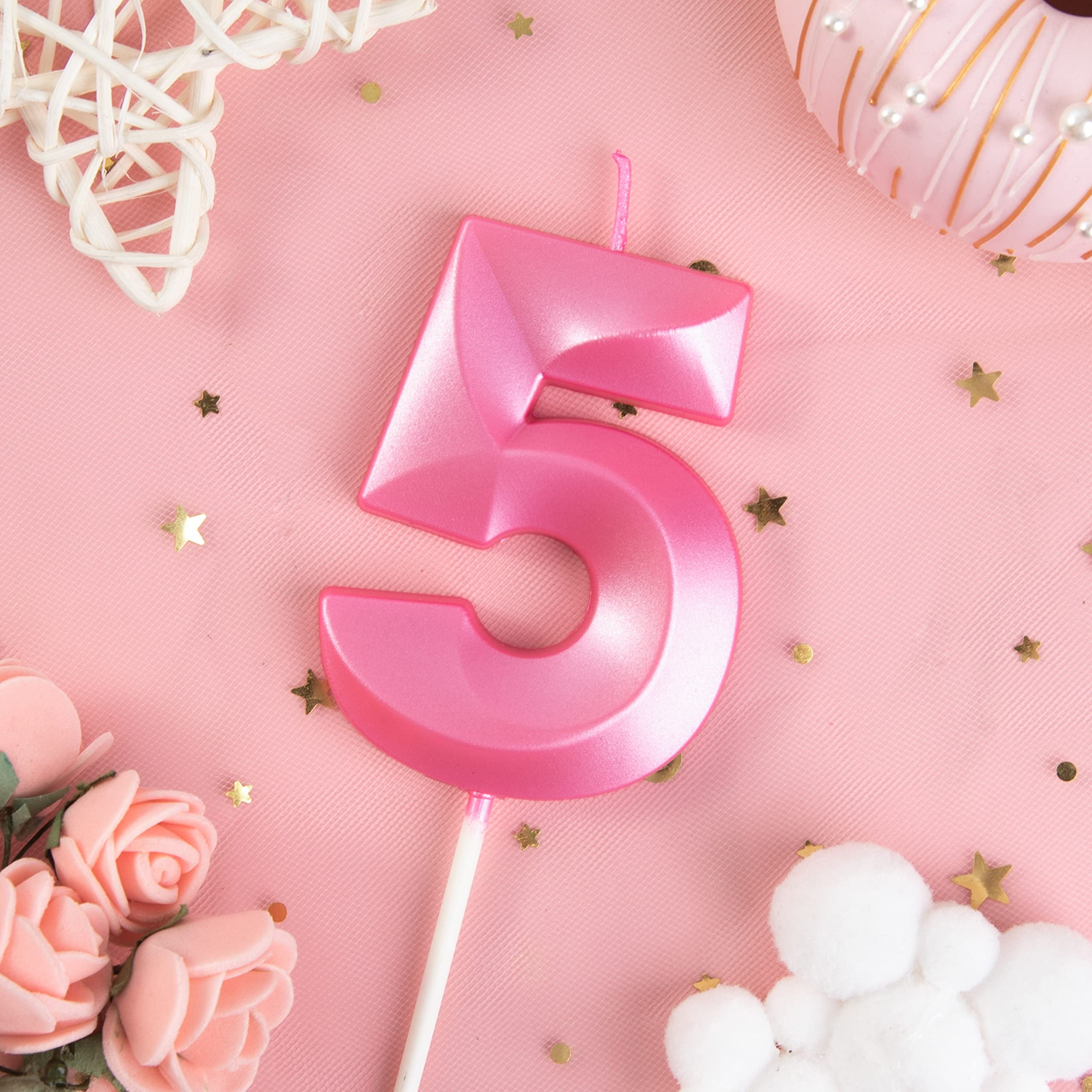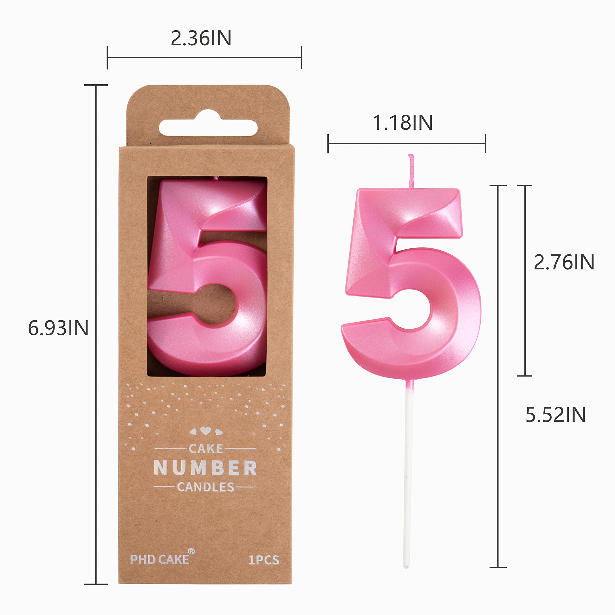 New: 2.76 Inch Large Diamond pink 5 Number Birthday Candle designed to make your cake and birthday a unique and truly inspiring event.