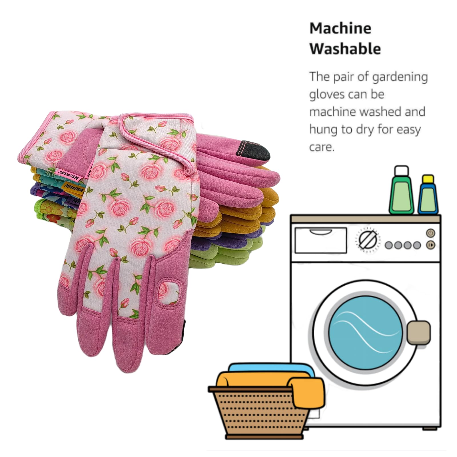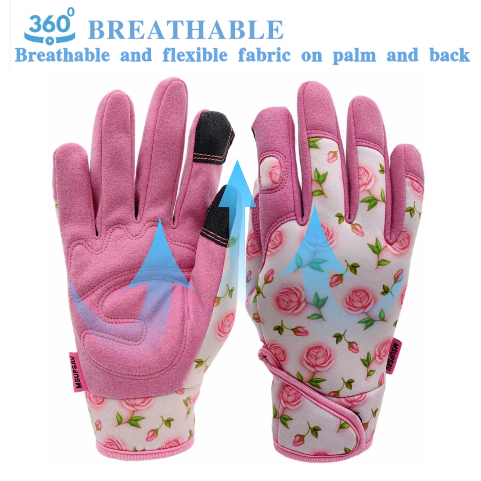 【MSUPSAV GARDEN GLOVES FOR GARDENING】Stretchable double-layer spandex design back keep your hands flexible,breathable&comfortable on the job. Leather with foam padded palm and reinforced fingertips increase durability.Supportive adjustable with hook& loop strips closure cuff for snug secure fit.