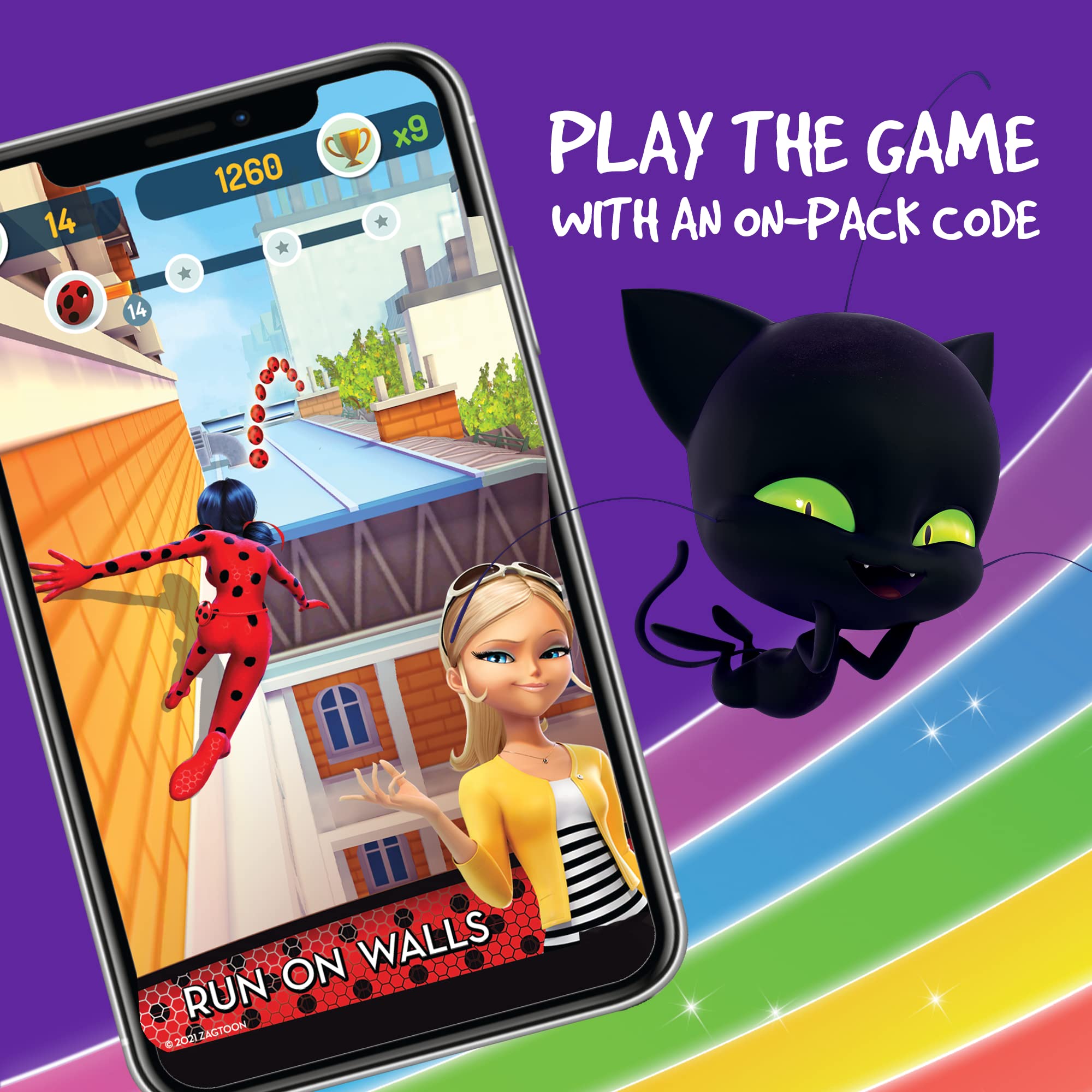 HAVE FUN AND EAT IT TOO: With these fruit snacks, the fun goes beyond the Miraculous characters found inside this box thanks to an on-pack code on the outside of the box that links to a digital game.