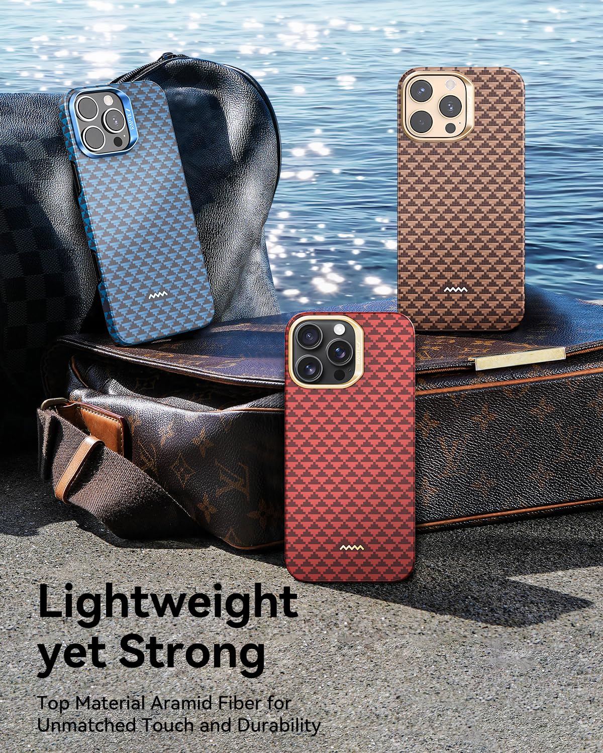[Ultra-Light Military-Grade Defense] Crafted with aerospace-grade aramid fiber 5x stronger and 50% lighter than steel, this featherlight shield delivers military-grade protection without bulk. Unlike carbon fiber, its precision-woven structure ensures zero signal interference with non-conductive durability that resists scratches, discoloration, and yellowing - all while maintaining a cloud-like 0-gravity grip.