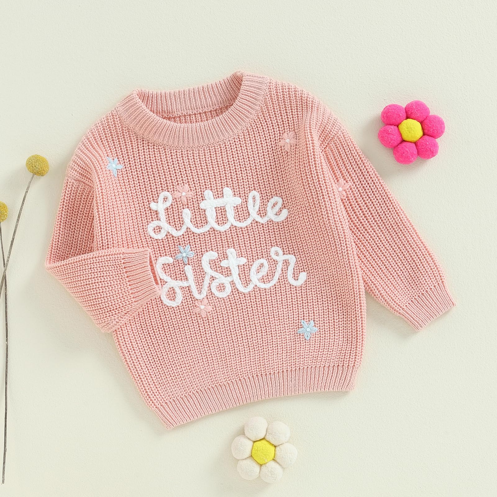 STYLISH DESIGN: Big brother sweater for toddler,little sister sweater for newborn infant a great gift for birthday,The baby pullover sweater with letters embroidery, long sleeves and crew neck, knitted fabric, newborn girl sweater,cute autumn sweater for infants and young children, long sleeves, loose fitting fit,