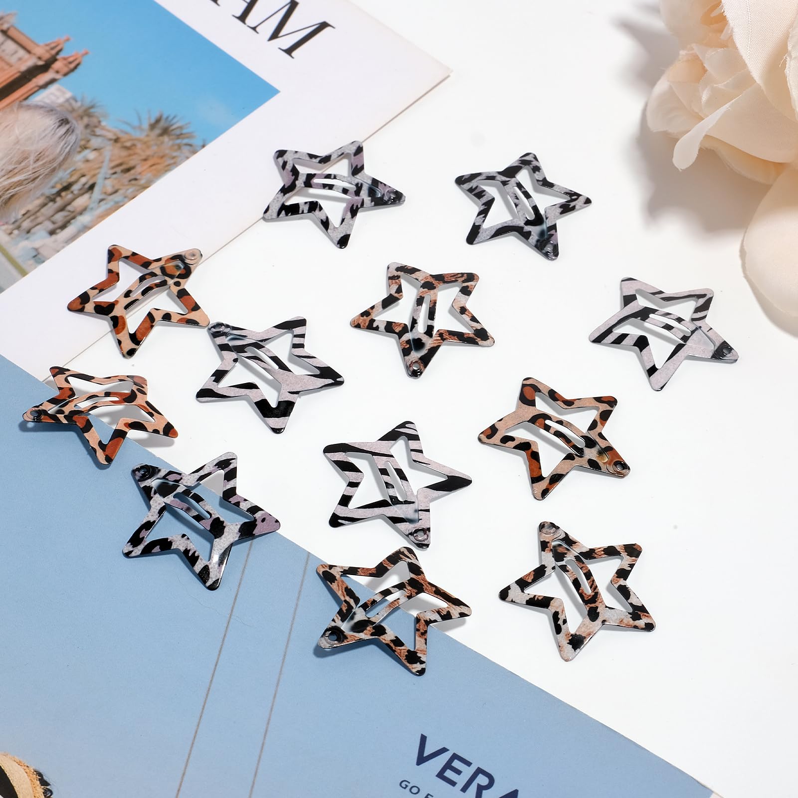 [ Hair Accessories for Women Girls ]: Metal hair clips with cute star shape, the Leopard colors hair clips can be great hair accessories for girls, wear this star barrette and get a cool hair style, perfect for shooting or just as a great helper for your mess hair.