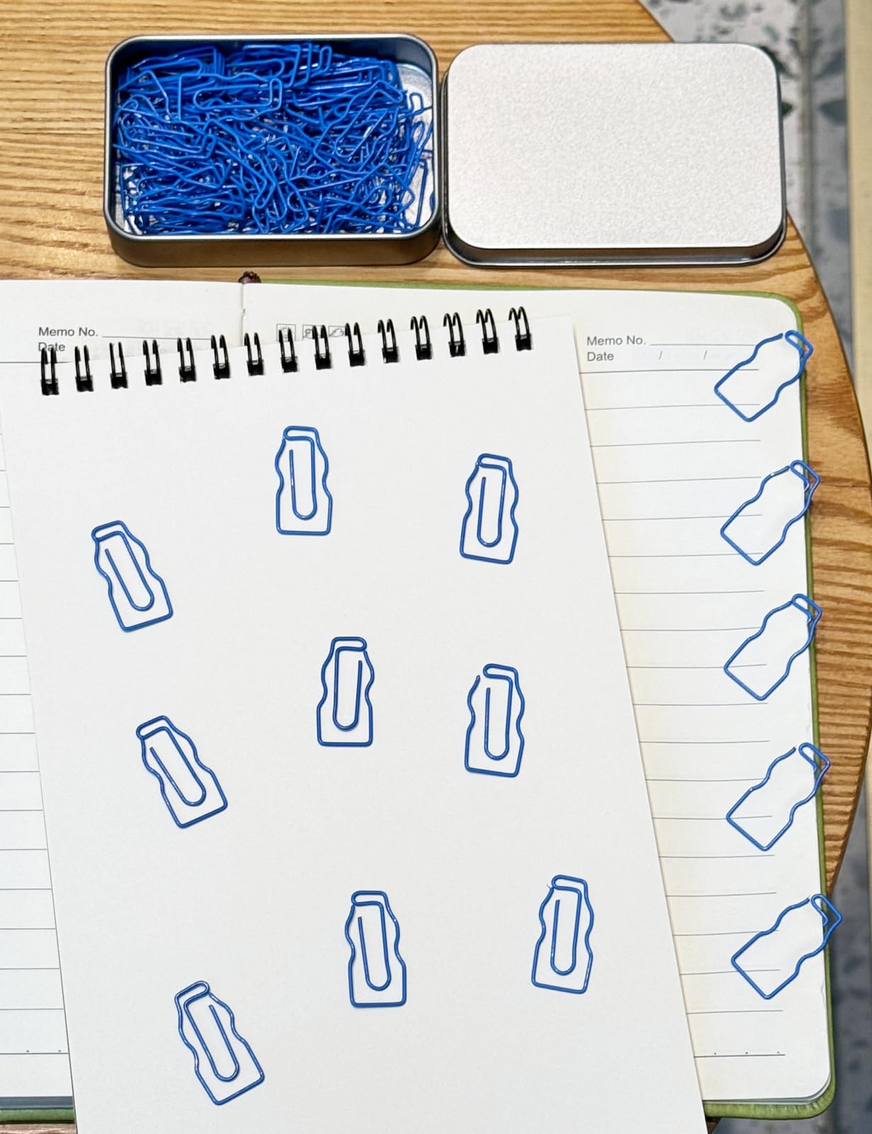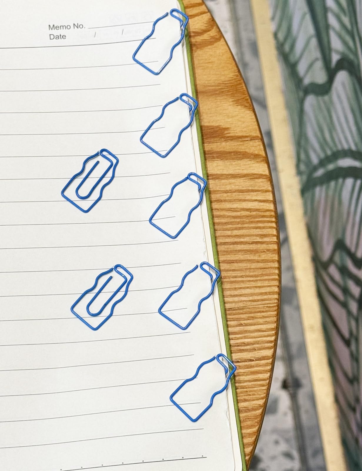 【Bottle Shaped Paper Clips】Cute bottle shaped paper clips with small bookmarks in blue color. Cute design with shiny appearance, add a lot of fun to your life.