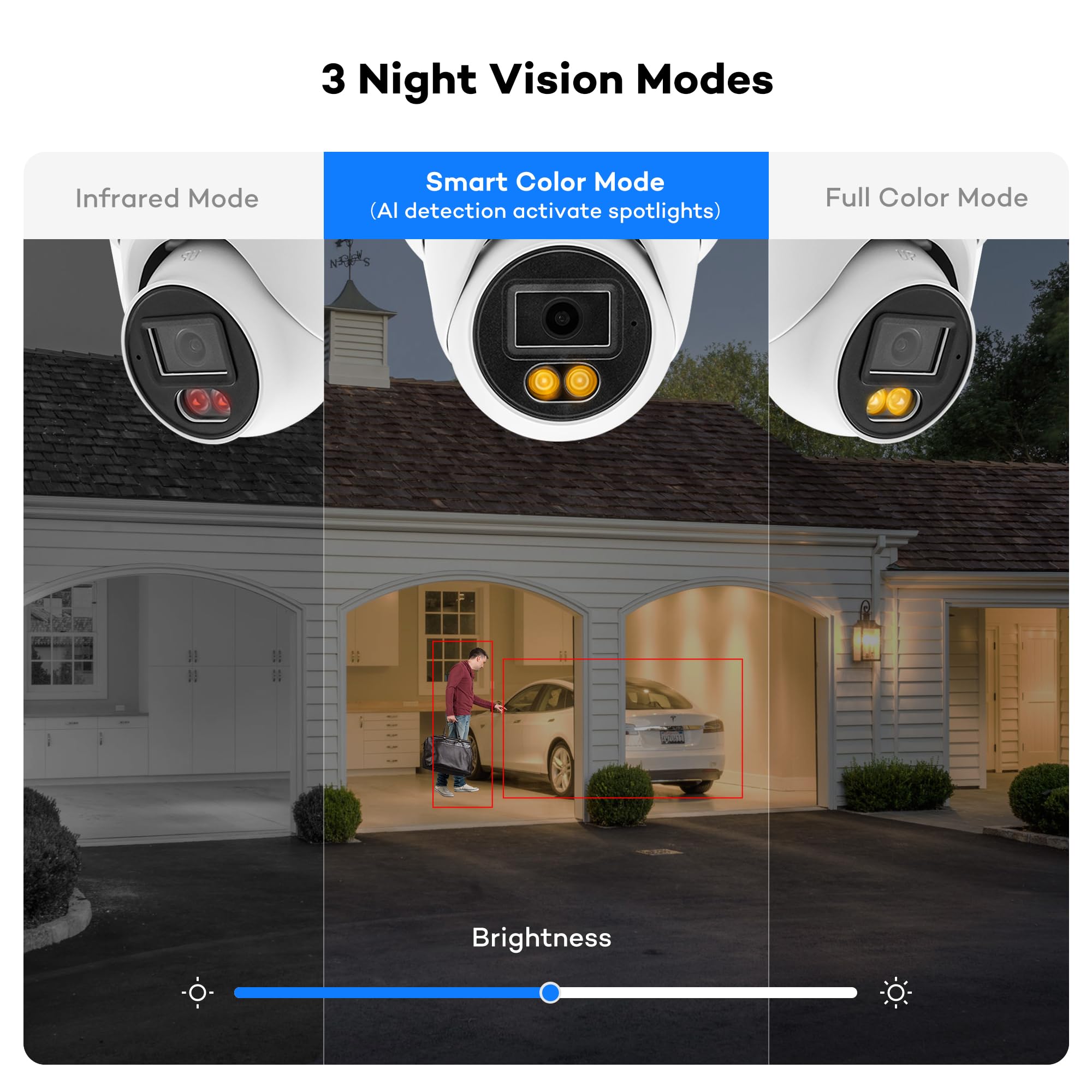 Smart Color Night Vision-- AI human vehicle detection activate color night vision.