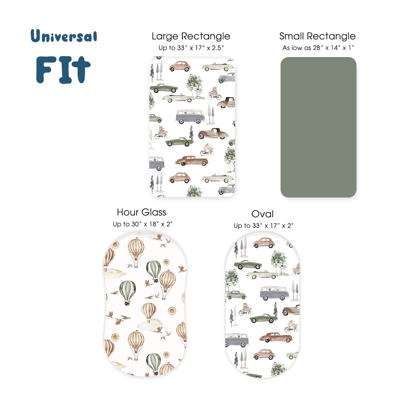 Universal Fit – Measuring 32" x 16" x 5". Our bassinet sheets fit almost all standard oval, round, rectangle, hourglass shaped bassinet mattress. Each bassinet mattress pad cover comes with an elastic band encased at the bottom for safety.