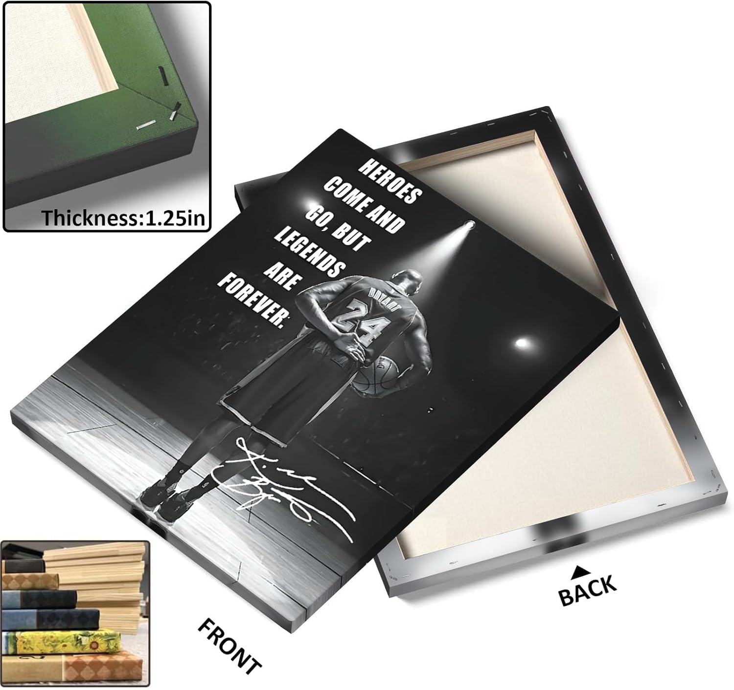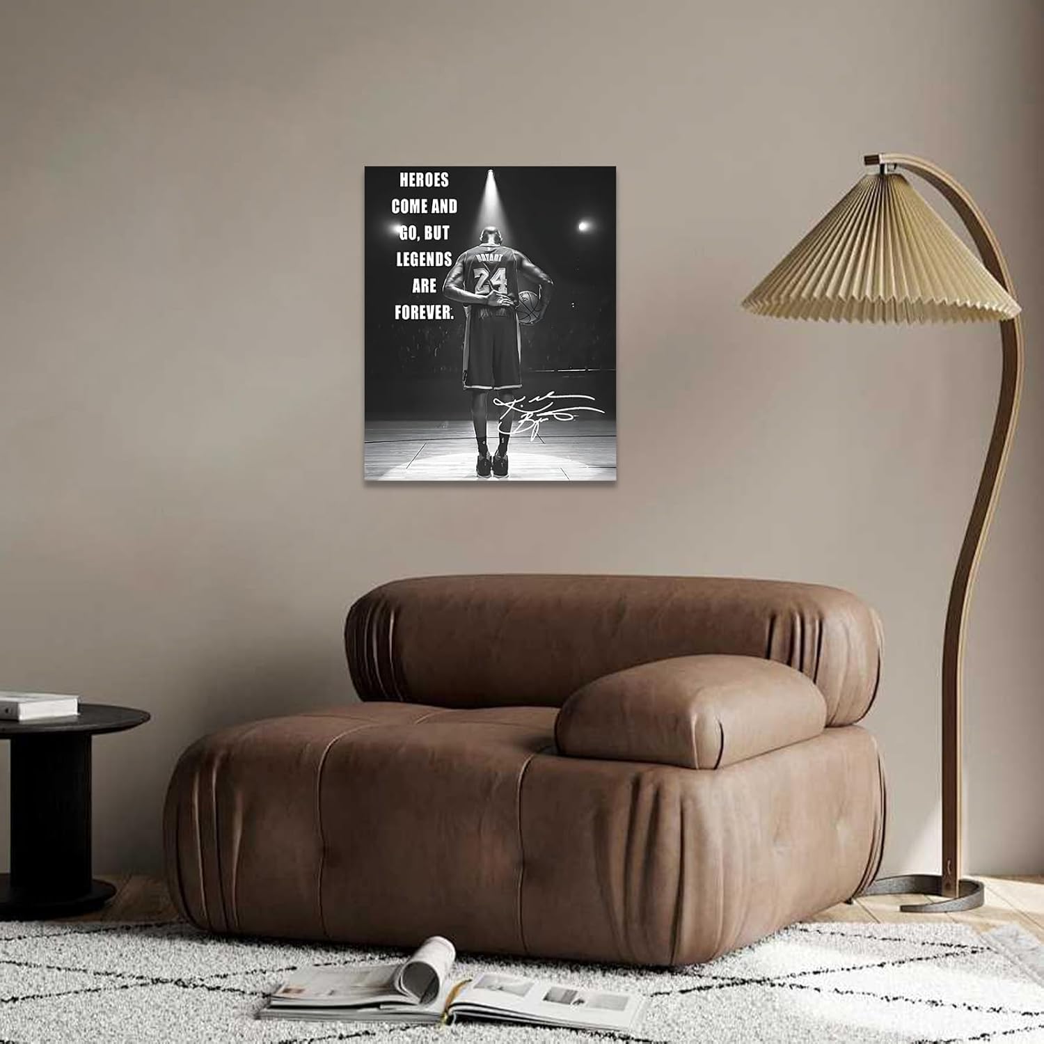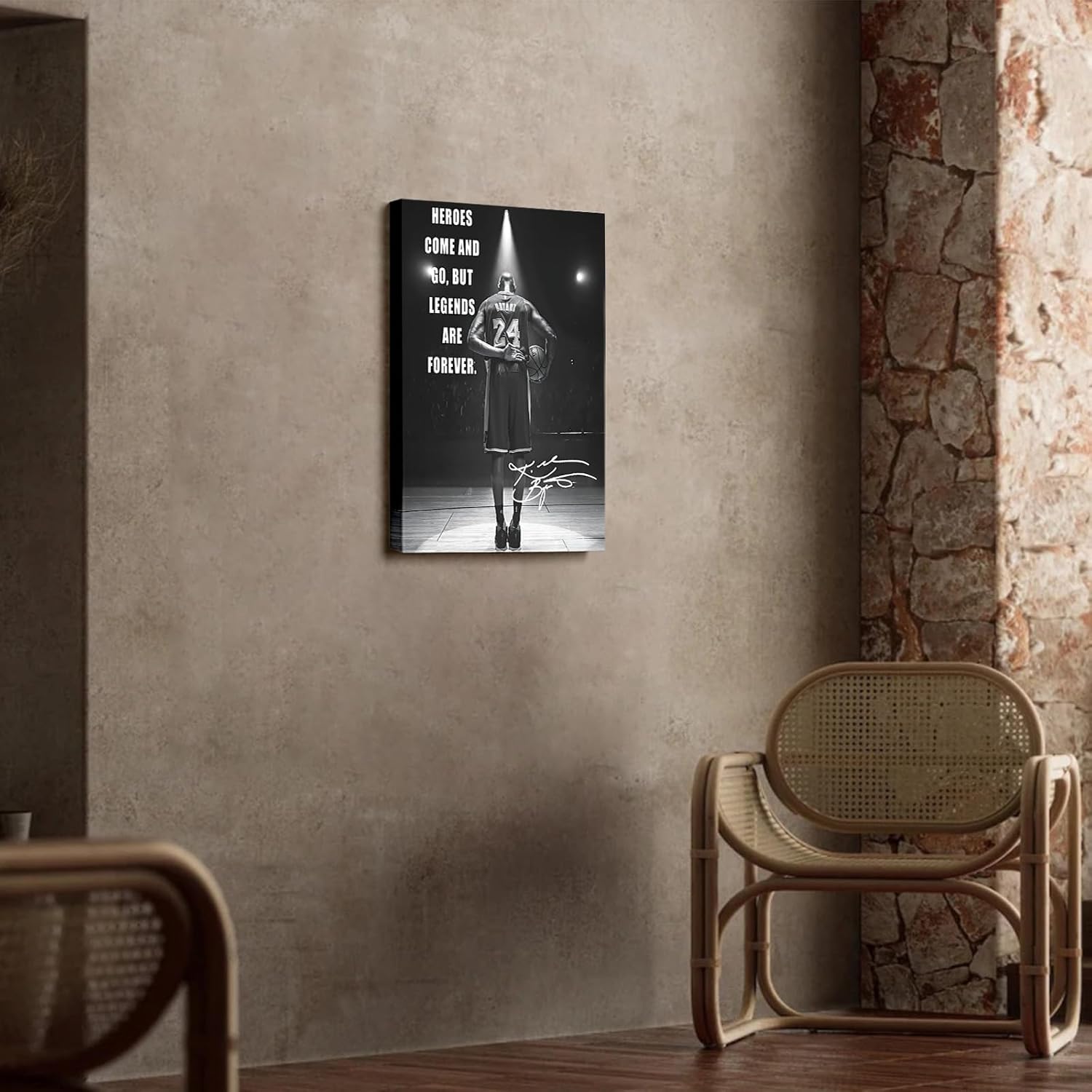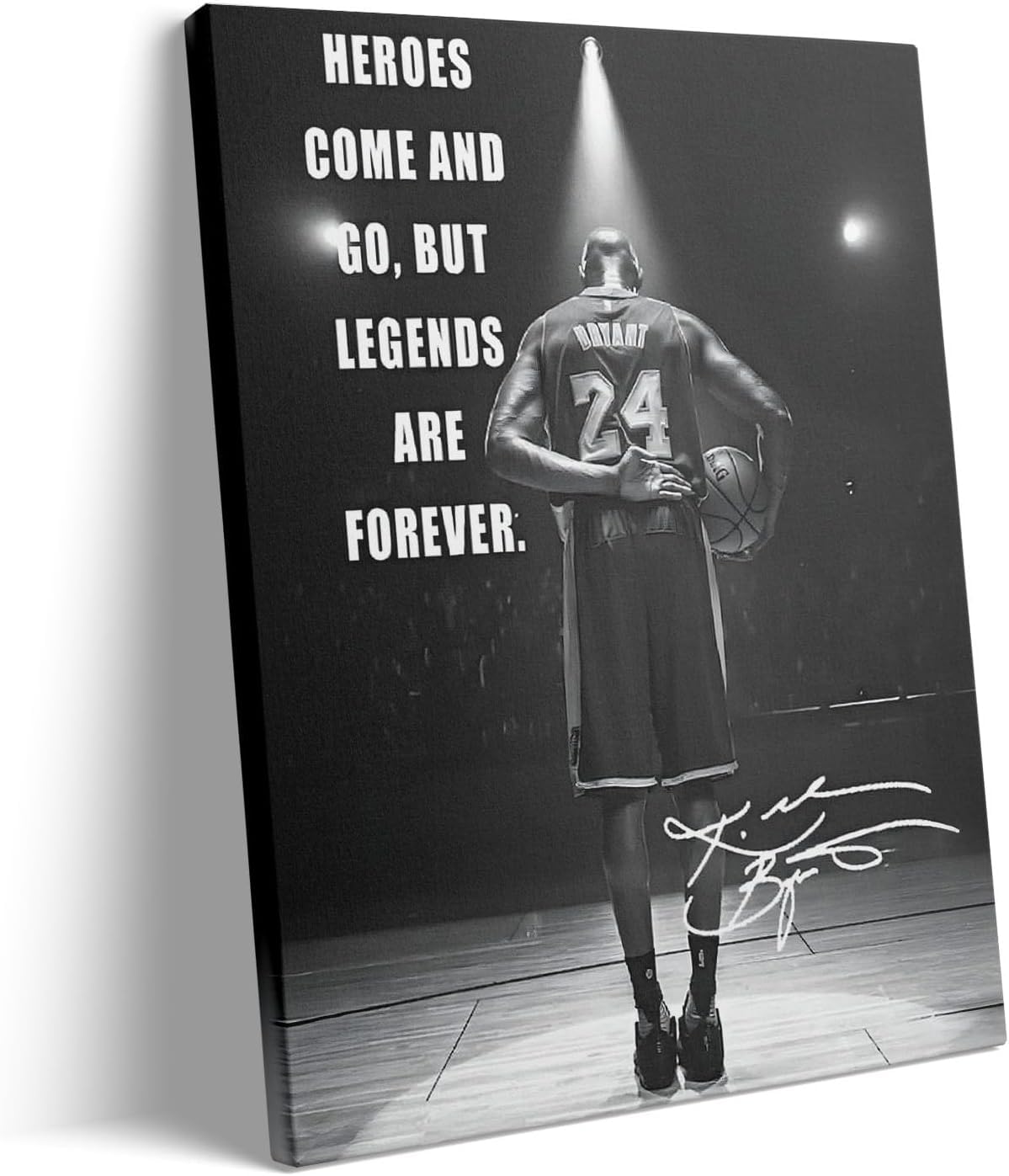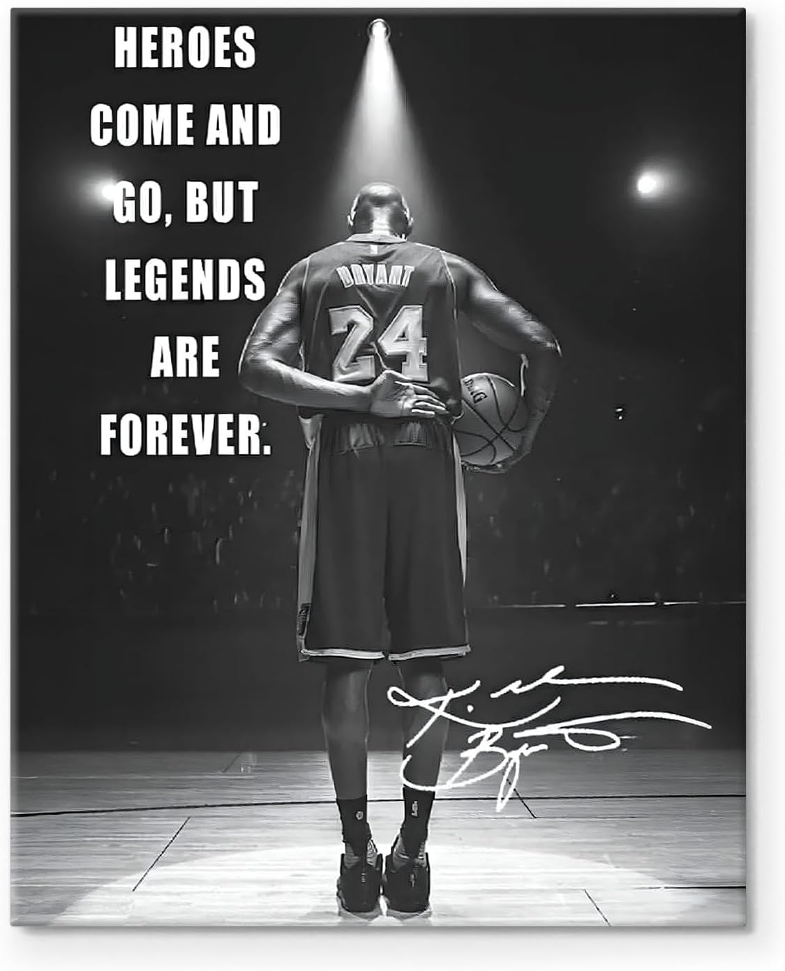 Inspirational Kobe Bryant Artwork: Featuring the powerful quote "Heroes Come and Go, but Legends Are Forever," this artwork immortalizes Kobe Bryant's legacy and determination.
