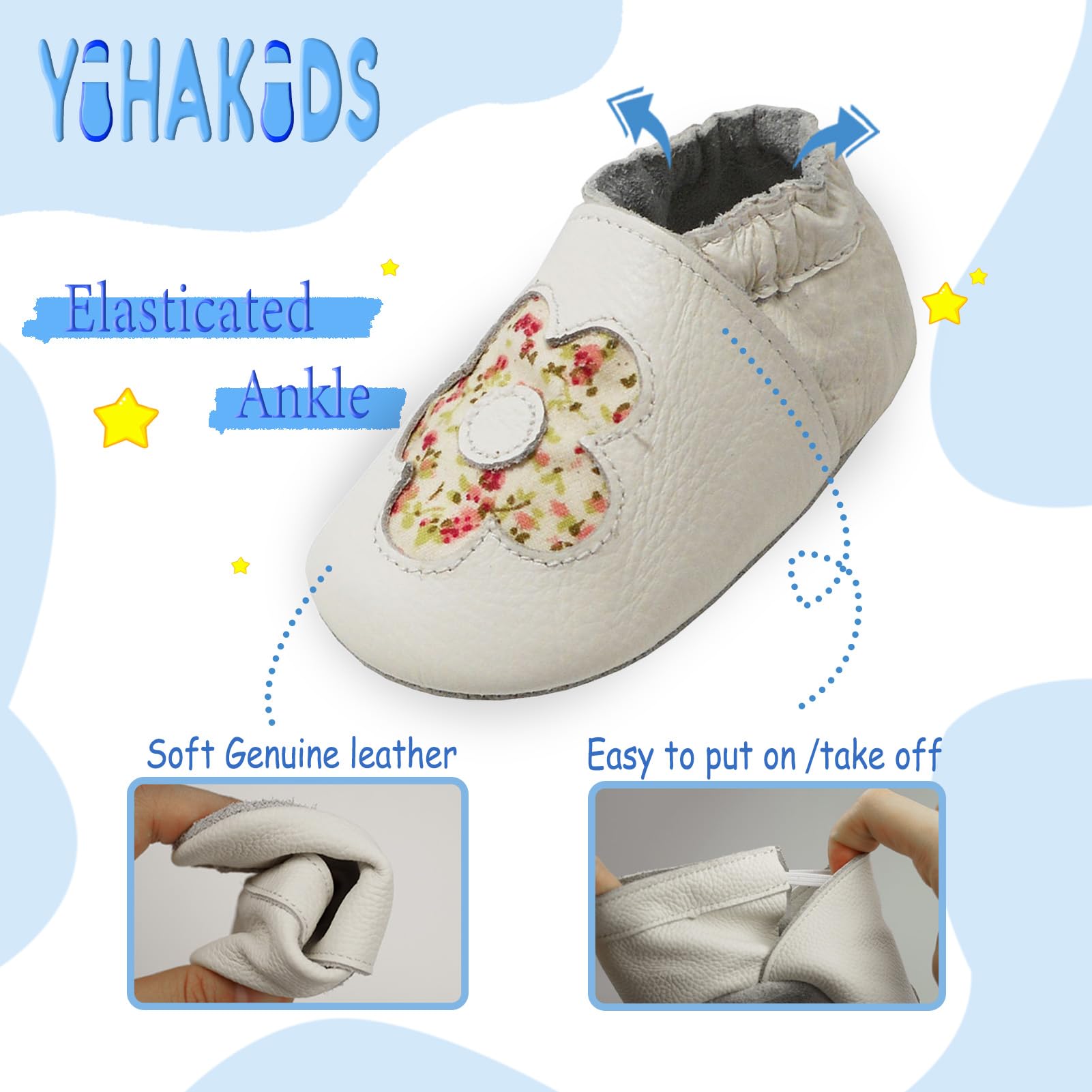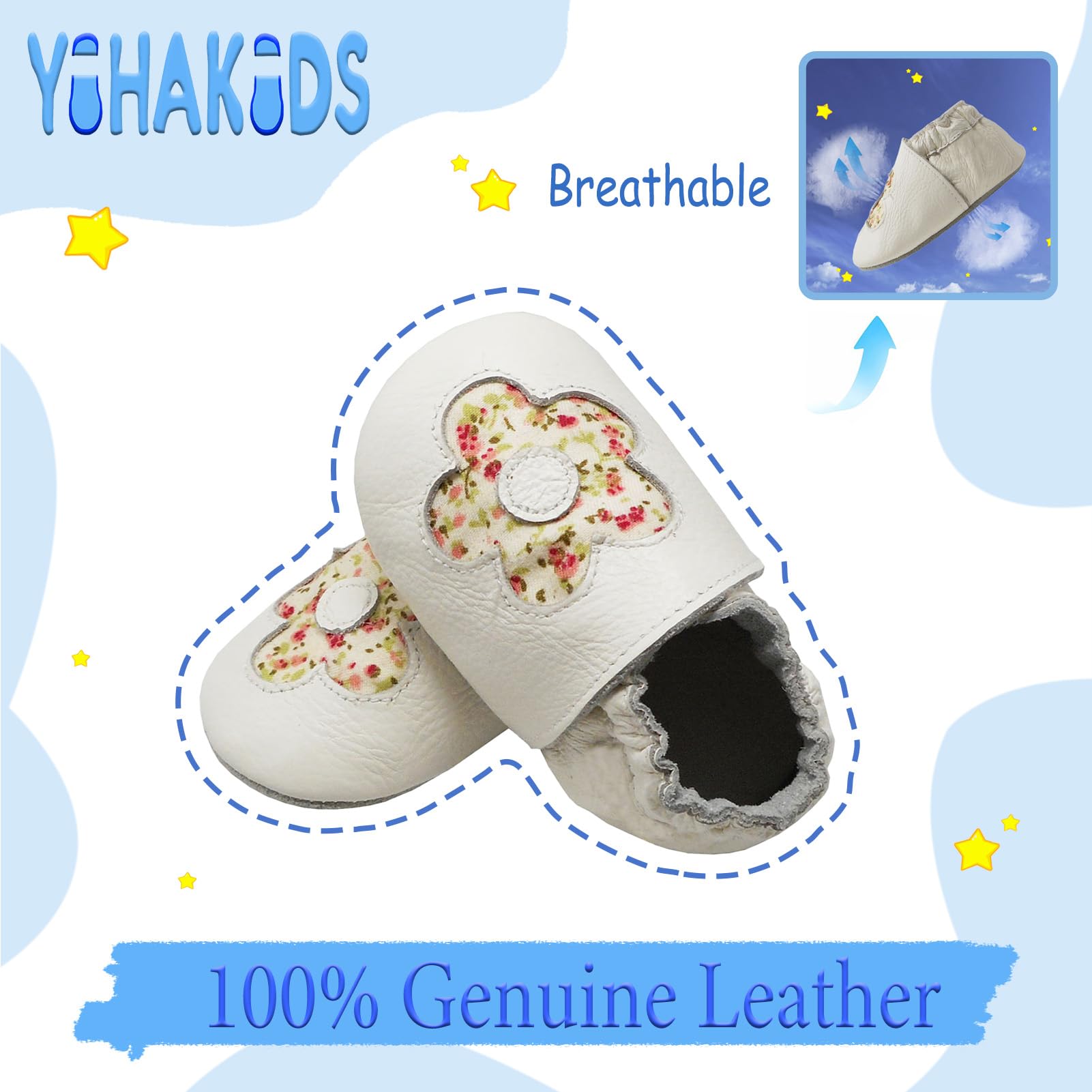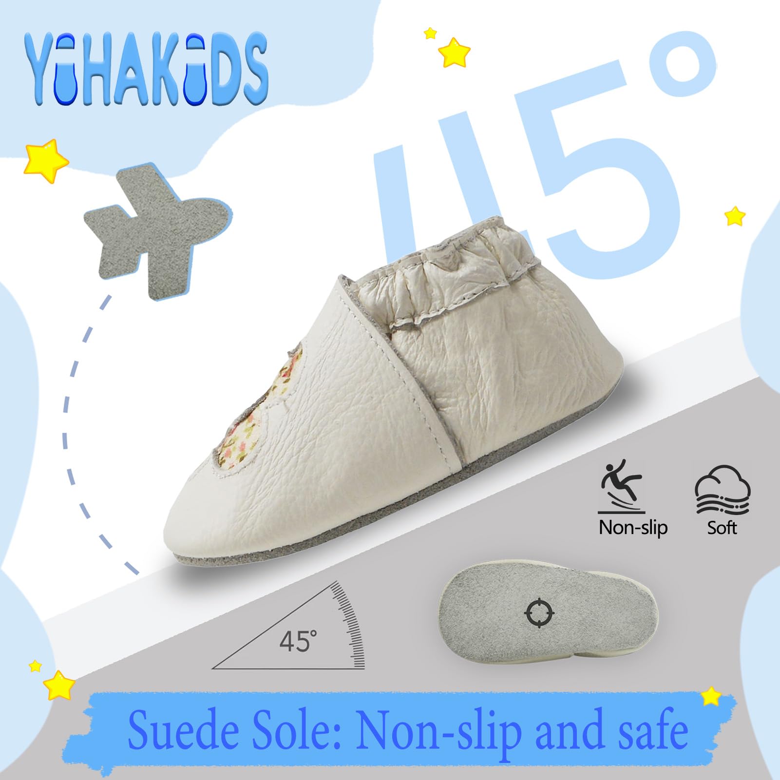 YIHAKIDS baby leather shoes are made of soft genuine cowhide leather with a non slip suede sole, providing a great grip on the floor.