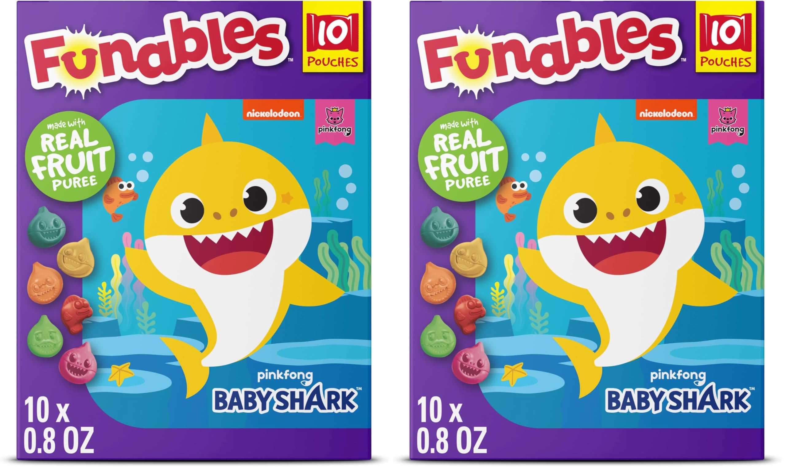 FRUITY SNACK PLANS COME TOGETHER: This pack of Funables Baby Shark fruity snacks includes ten individually wrapped 0.8 oz pouches of fruity snacks