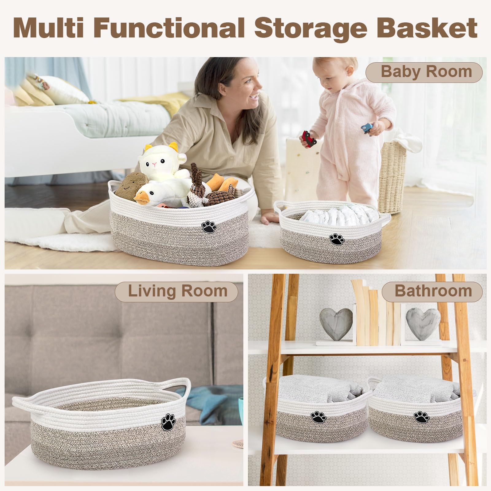 Versatile Storage Basket: This storage box can not only hold many of the pet's supplies, but also store baby clothes, diapers, towels, toiletries, and more. Suit for using in the closet, living room, bathroom, and other rooms