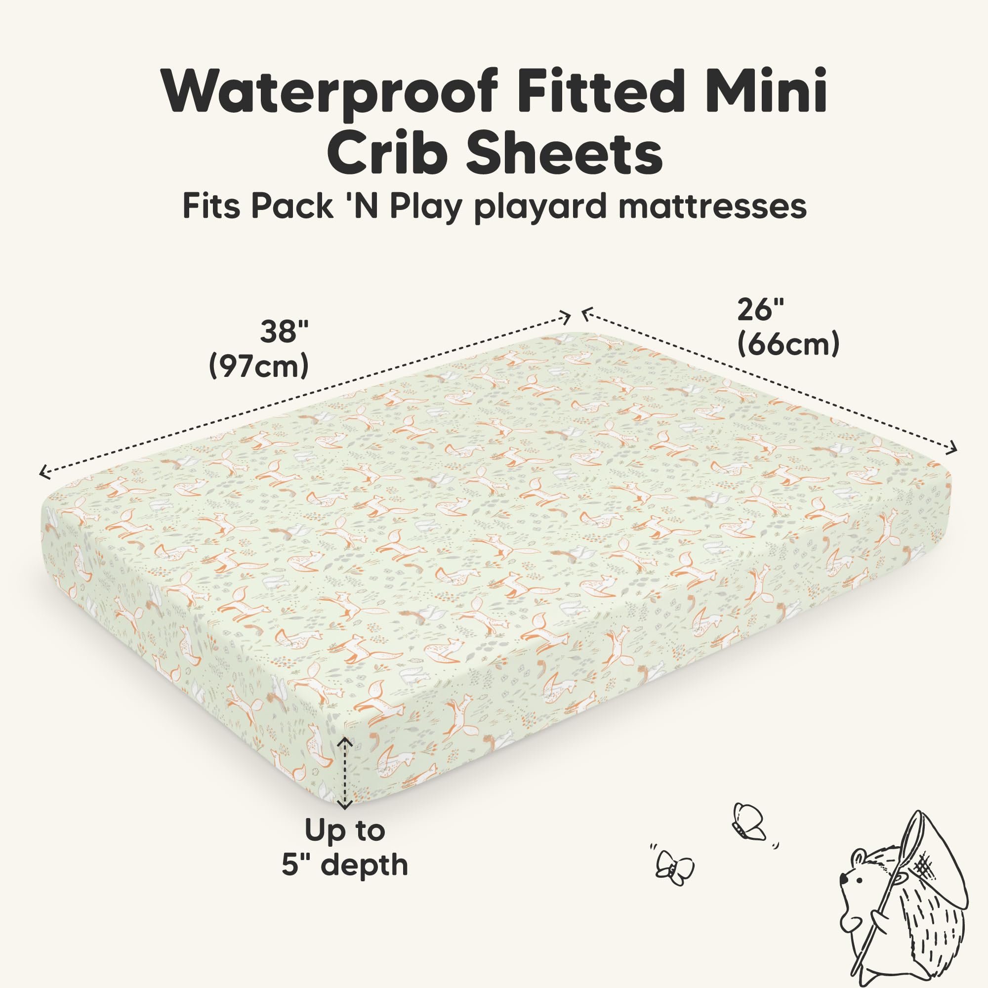 2-Pack Pack and Play Sheets - Each KeaBabies Isla Protect+ Mini Fitted Crib Sheet set comes with two waterproof playard sheets for both boy and girl that can perfectly fit the standard Graco pack n play crib mattress sized at 38” x 26” up to 5”.